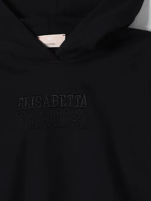 Felpa cropped Elisabetta Franchi La Mia Bambina modello con cappuccio, maniche lunghe e logo in tono ricamato sul davanti, colore nero