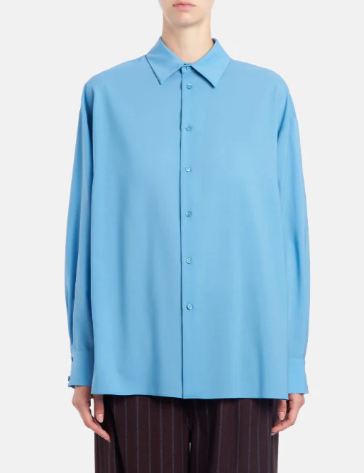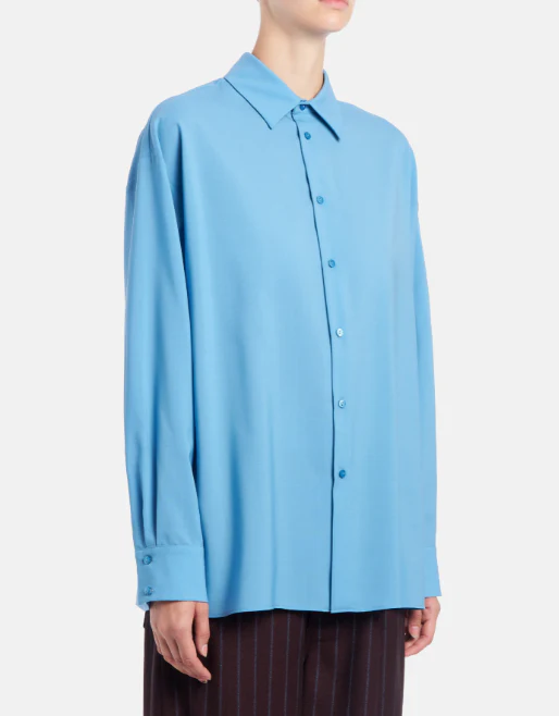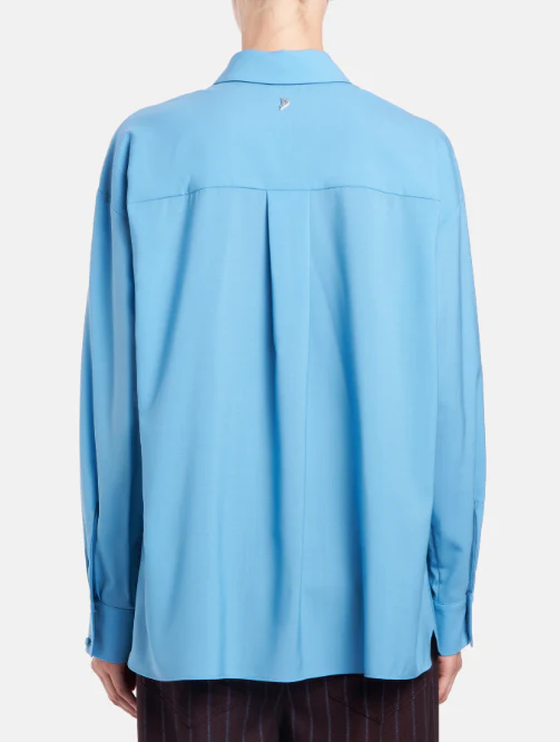 Camicia Dondup donna, modello loose a maniche lunghe con carrè dietro con pieghe a cannoncino, popeline di lana extra fine, colore azzurro