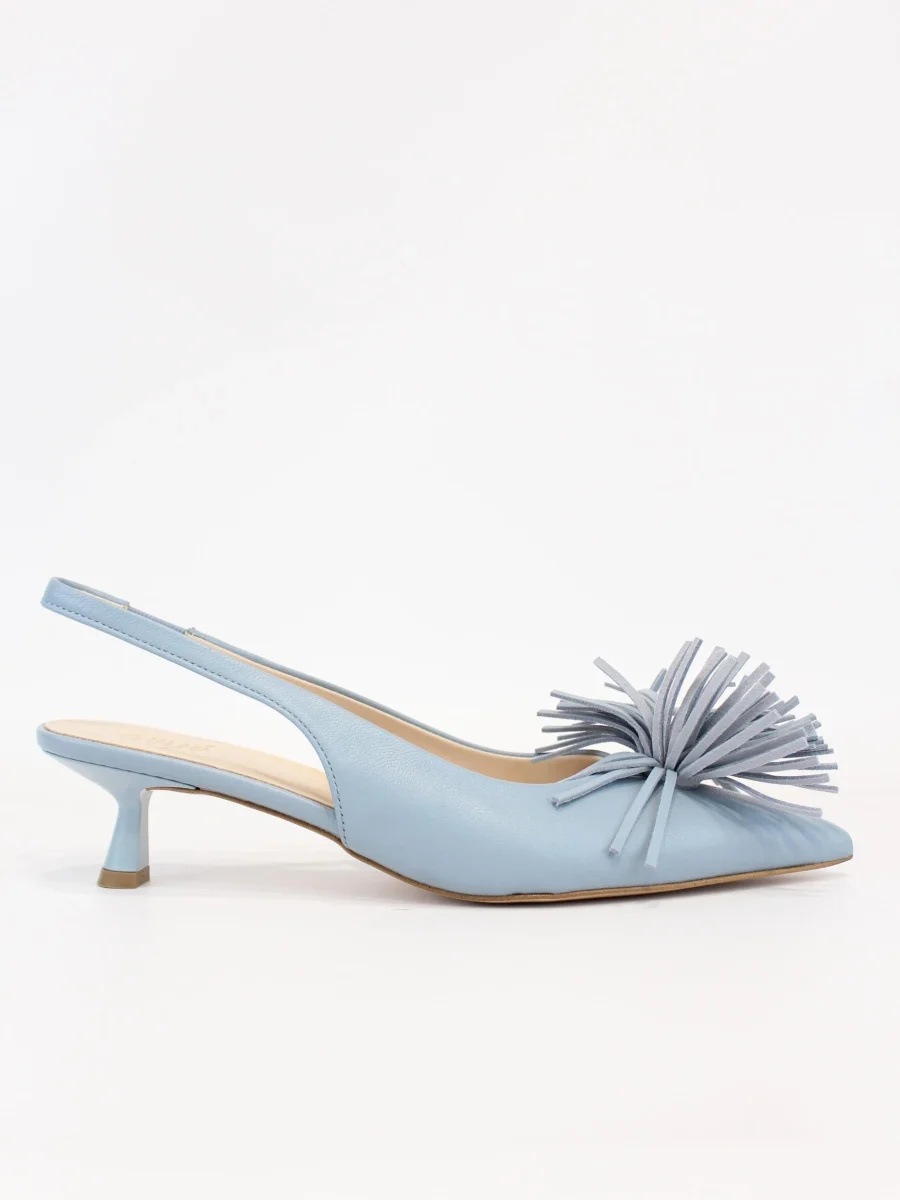 Dècollete Ovyè donna, modello con tacco 4 cm. Elasticizzato nella parte posteriore per maggiore comfort, applicazione sul davanti, colore cielo