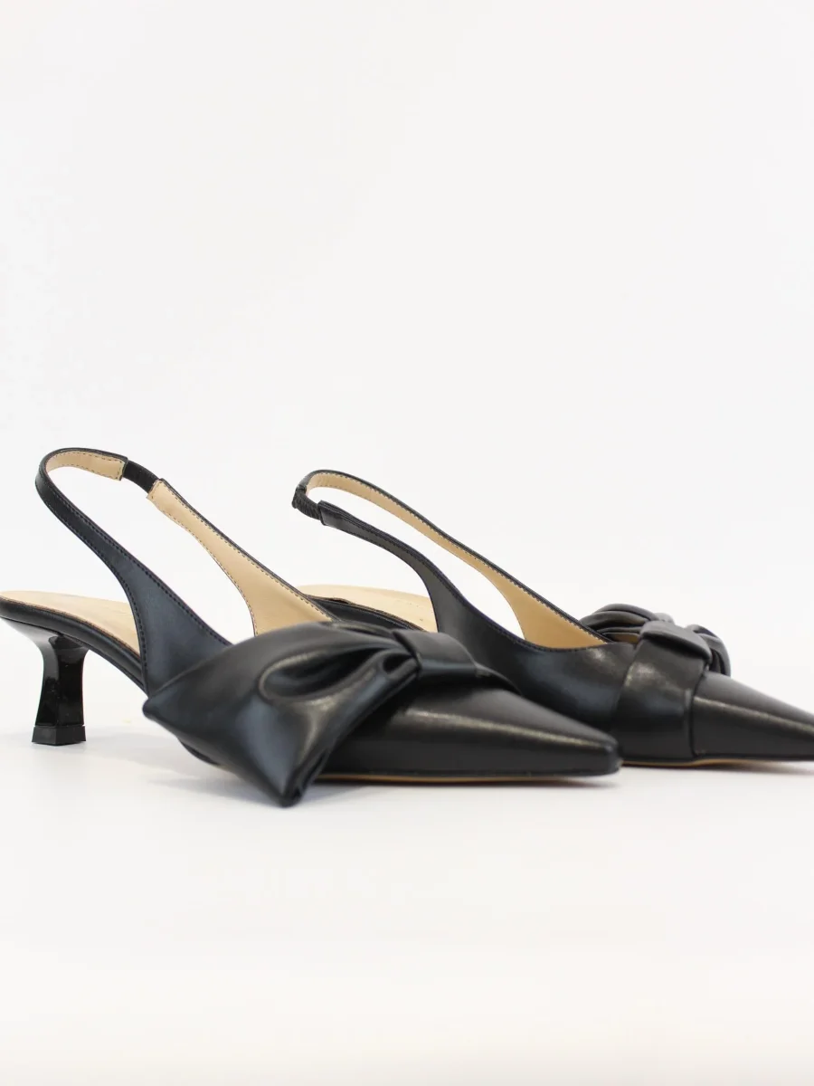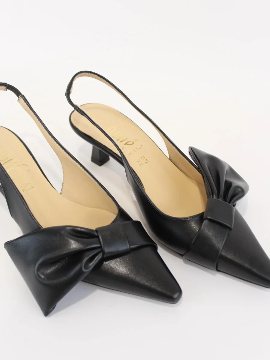 Dècollette donna Ovyè, modello in ecopelle con tacco 5 cm, cinturino alla caviglia per una maggiore comodità . Applicazione sul davanti, colore nero