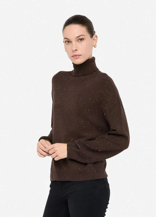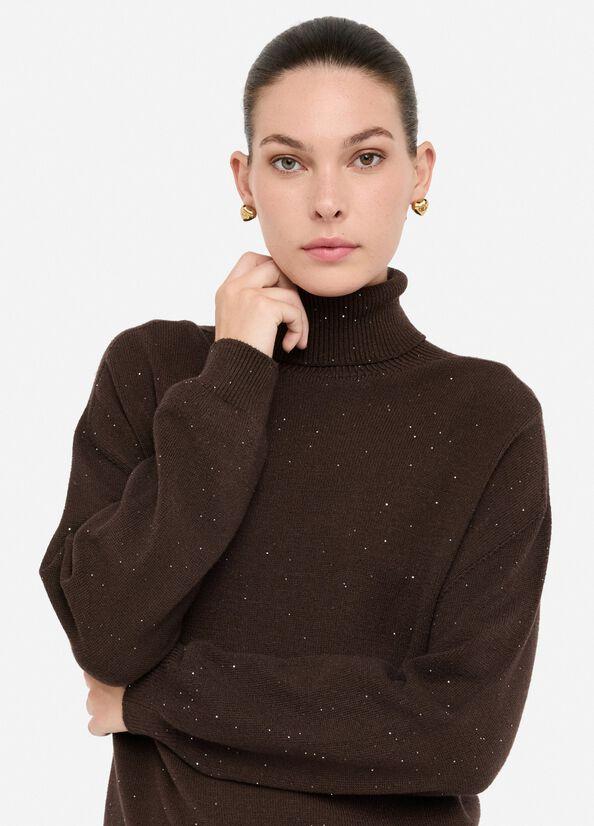 Dolcevita donna Liu Jo White, modello in filati con micro pailettes applicate all over, colore marrone