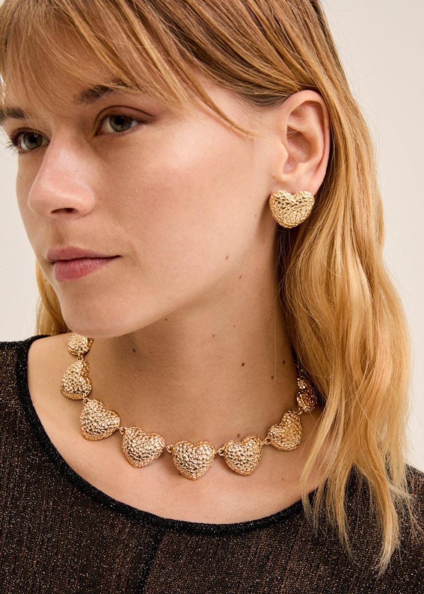 Collana girocollo con cuori martellati dorati, colore oro