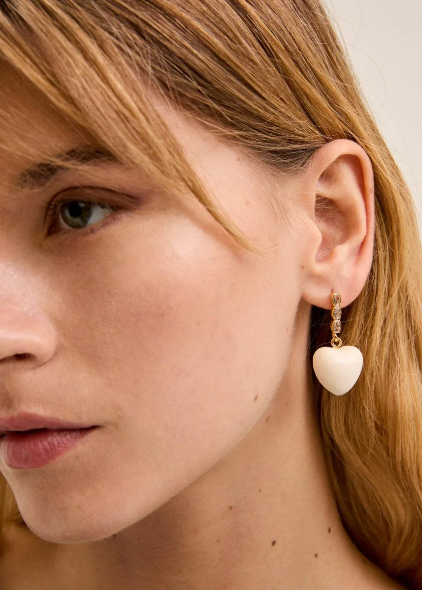 Orecchini pendenti con cuore tridimensionale e attacco arricchito da elementi luminosi
