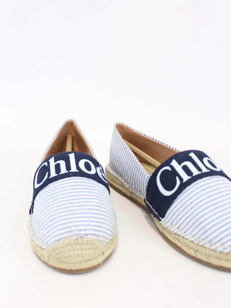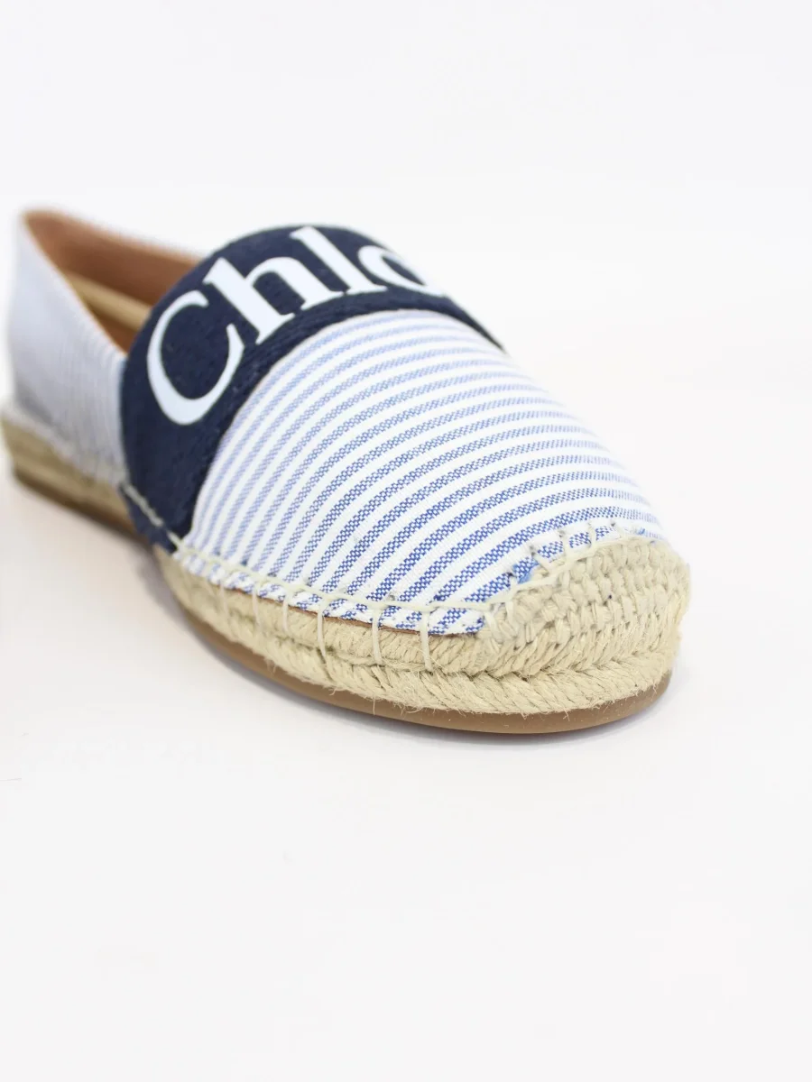 Espadrillas Chloè bambina, modello in tessuto con fodera in pelle di pecora, concia, suole in corda, illustrazione logo Chloè