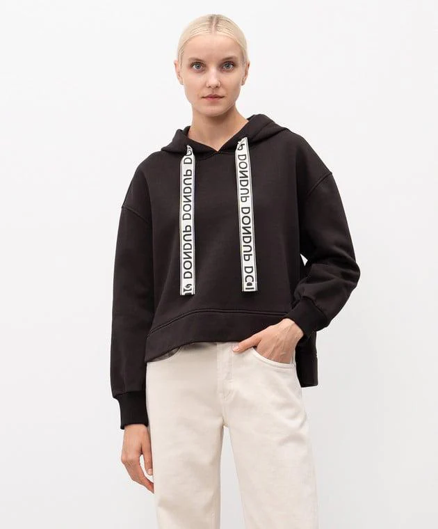 Felpa Dondup donna, modello con cappuccio, vestibilità over e dettaglio con coulisse al collo logata, colore nero