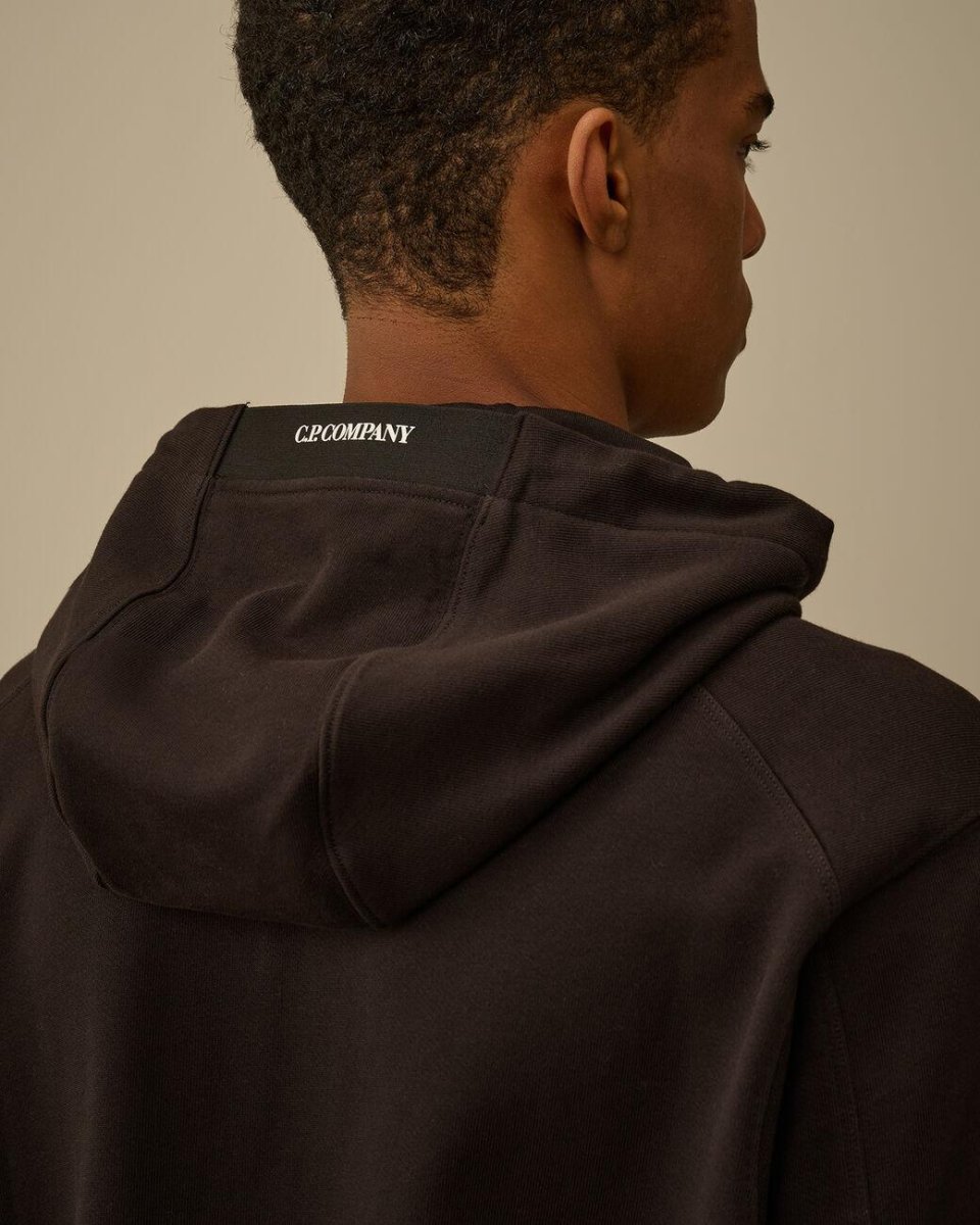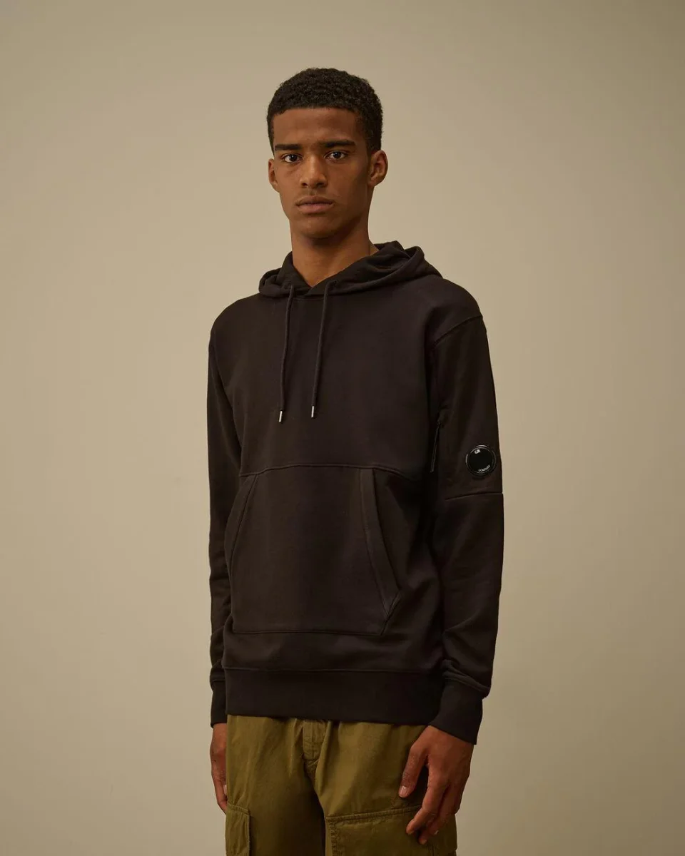Felpa CP Company uomo, cappuccio regolabile, tasca a marsupio, taschino con lente e polso e orlo a costine, vestibilità regular, colore nero