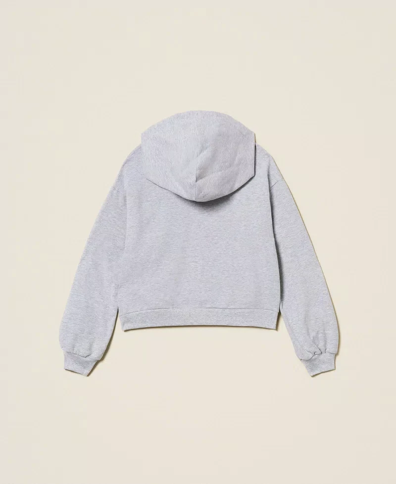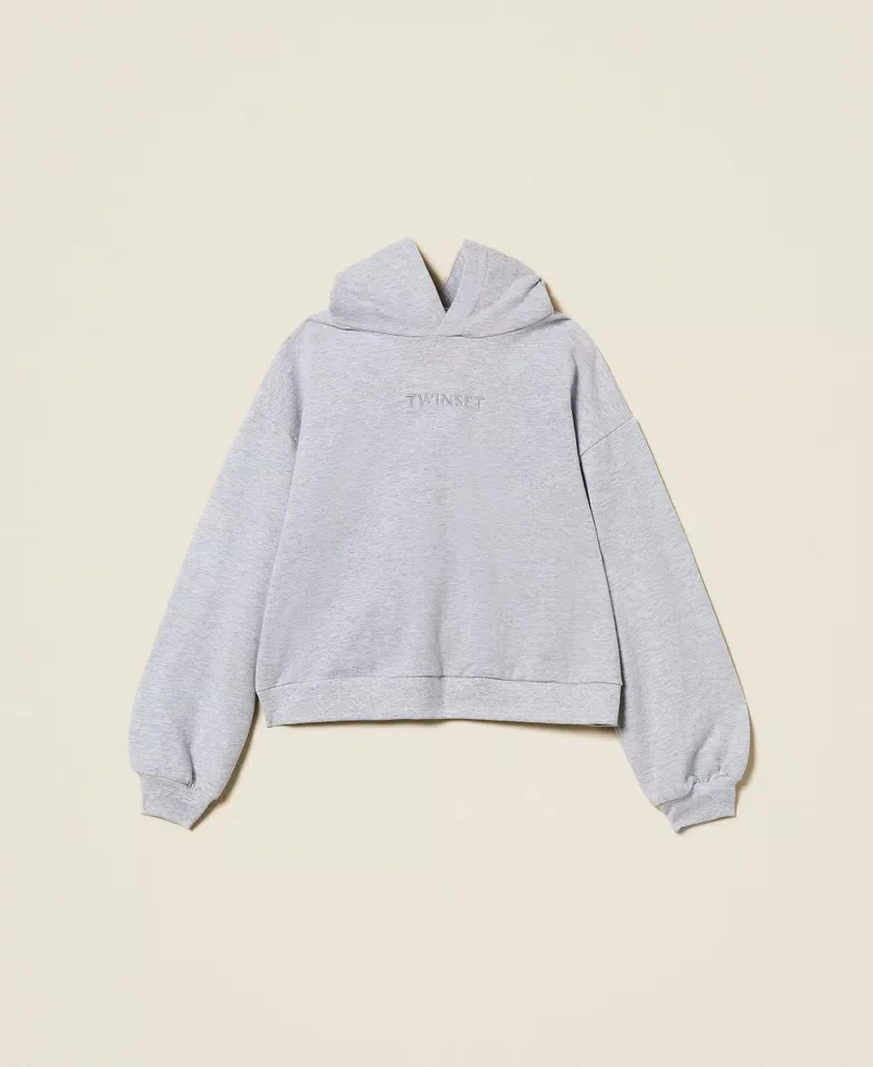 Felpa Twinset Girl, modello con cappuccio fisso, maniche lunghe, dettaglio logo in contrasto, colore grigio