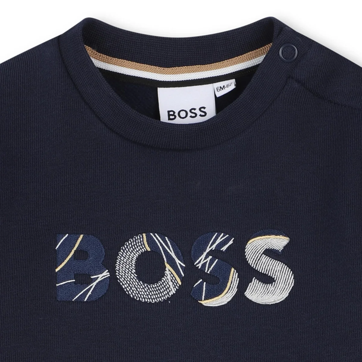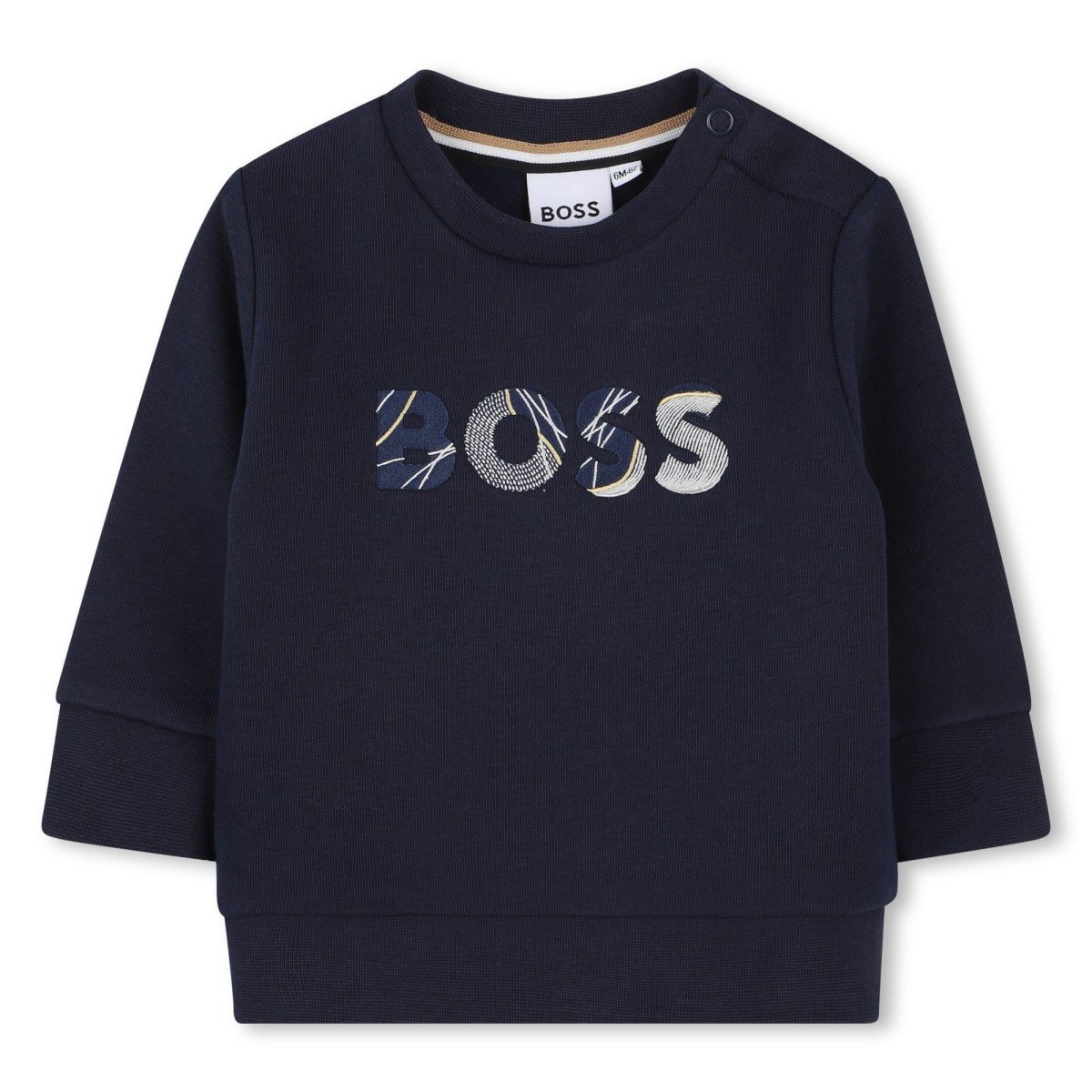 Felpa con logo Boss Kids, modello girocollo e maniche lunghe, loog in contrasto al centro, colore blu