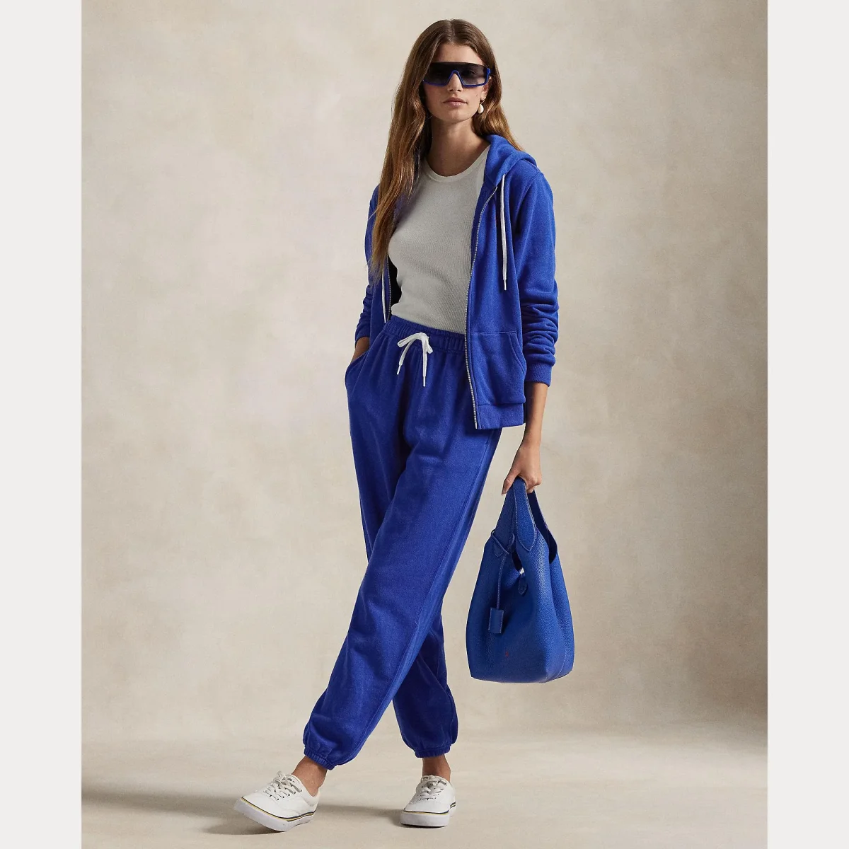 Felpa Polo Ralph Lauren, modello realizzato in pile di cotone, dotata di cappuccio fisso e chiusura full zip centrale, logo ricamato sul petto, colore blu elettrico