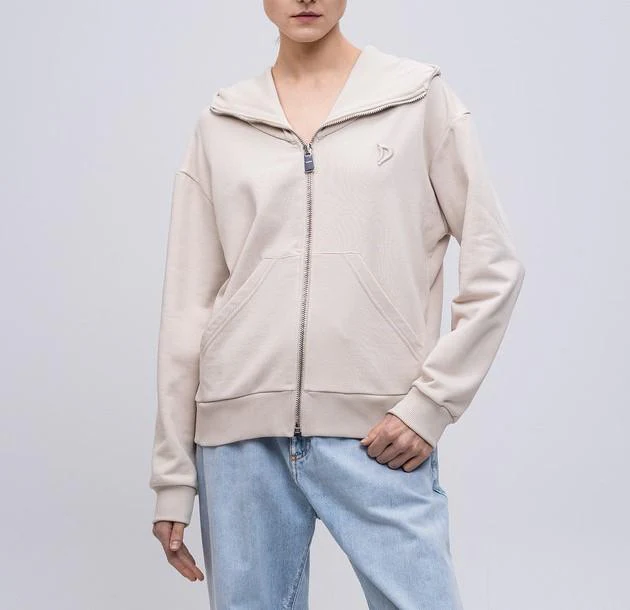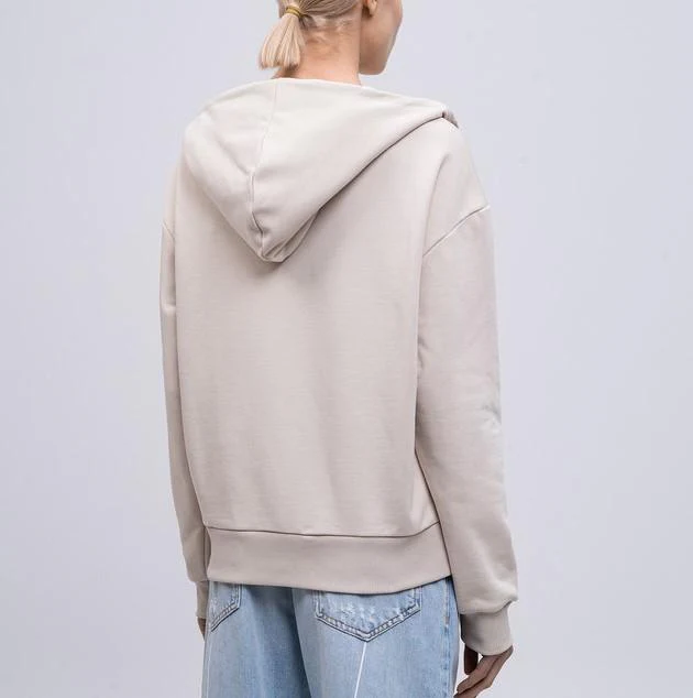 Felpa con cappuccio over e maniche lunghe, apertura full zip e logo ricamato sul petto, colore bianco