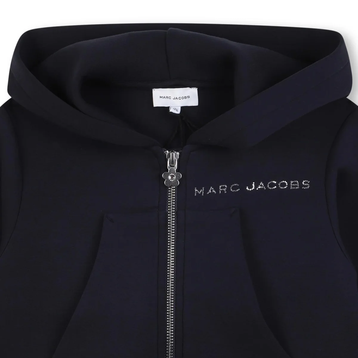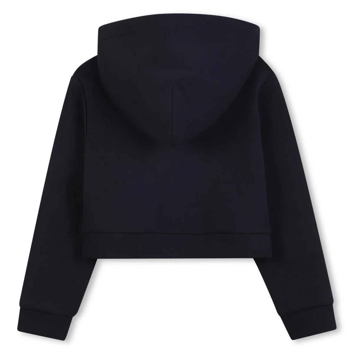 Felpa cropped full zip con cappuccio fisso, logo in contrasto sul petto, colore blu