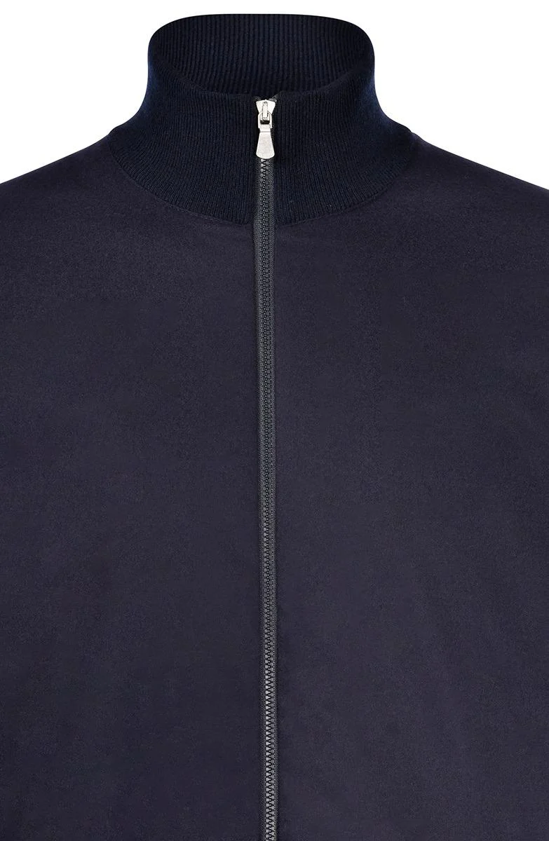 Felpa full zip Gran Sasso in misto cashmere con zip a doppio cursore e collo a lupetto, parte frontale in flanella, regular fit, colore blu
