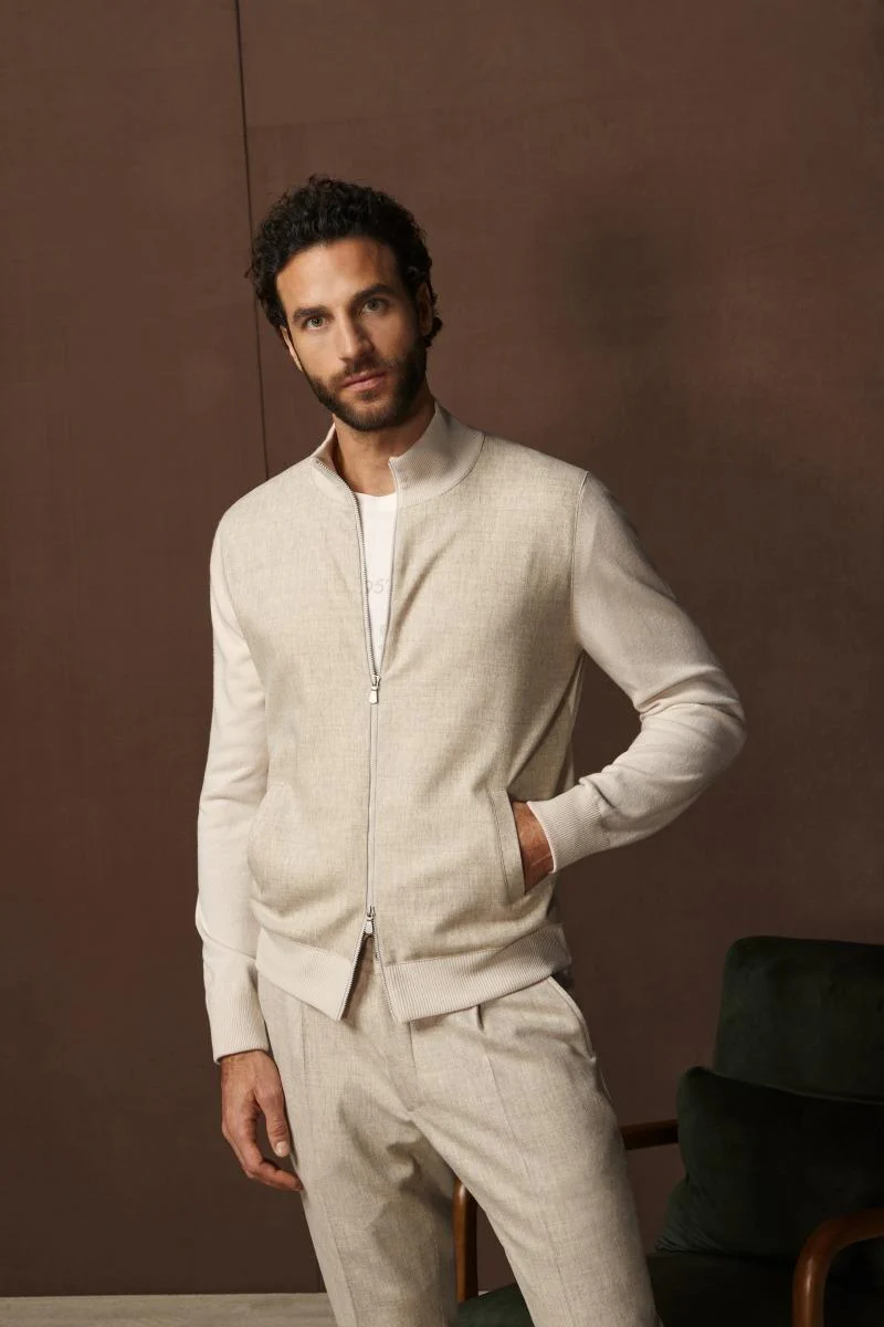 Felpa full zip Gran Sasso in misto cashmere con zip a doppio cursore e collo a lupetto, parte frontale in flanella, regular fit, colore bianco