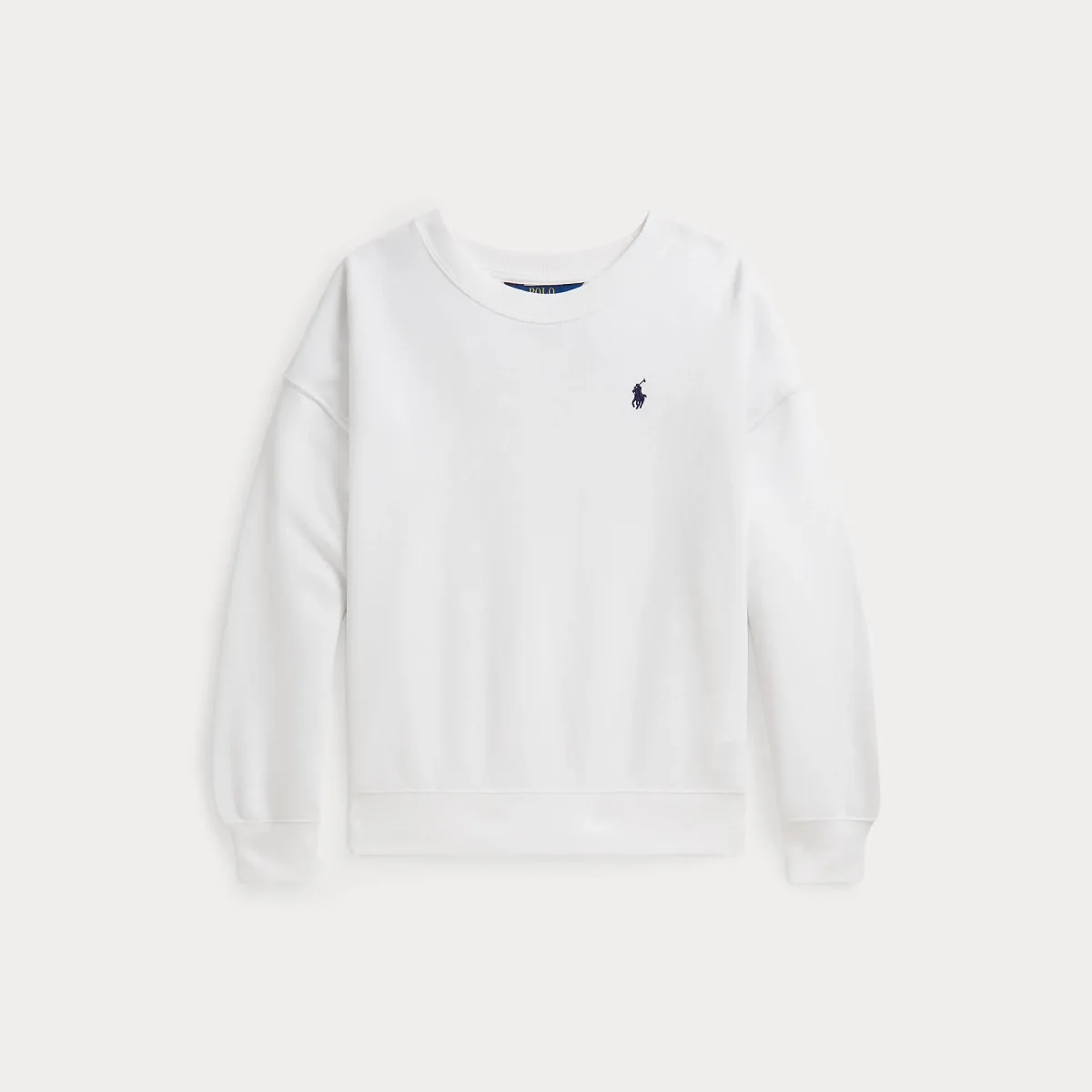 Felpa in spugna Ralph Lauren bimbo, modello girocollo e maniche lunghe, dettaglio logo in contrasto iconico pony, colore bianco