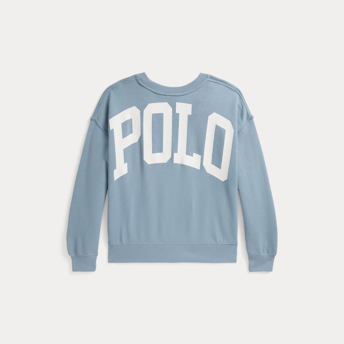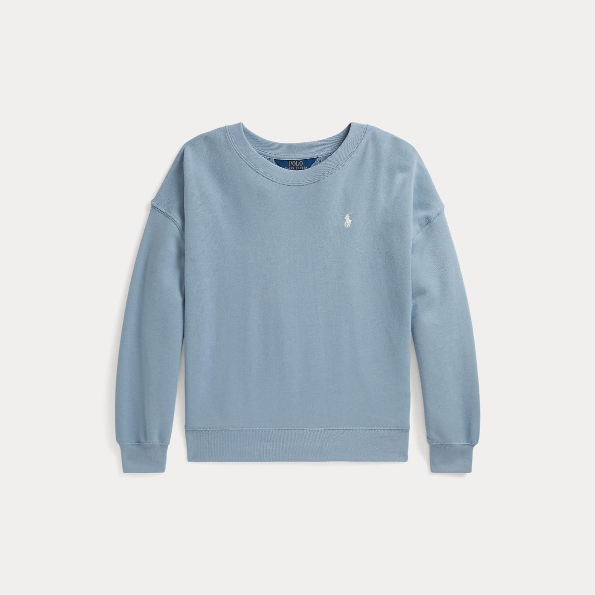 Felpa in spugna Ralph Lauren bimbo, modello girocollo e maniche lunghe, dettaglio logo in contrasto iconico pony
