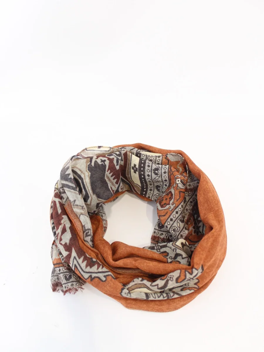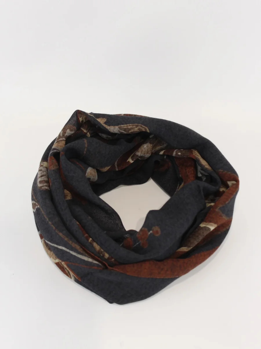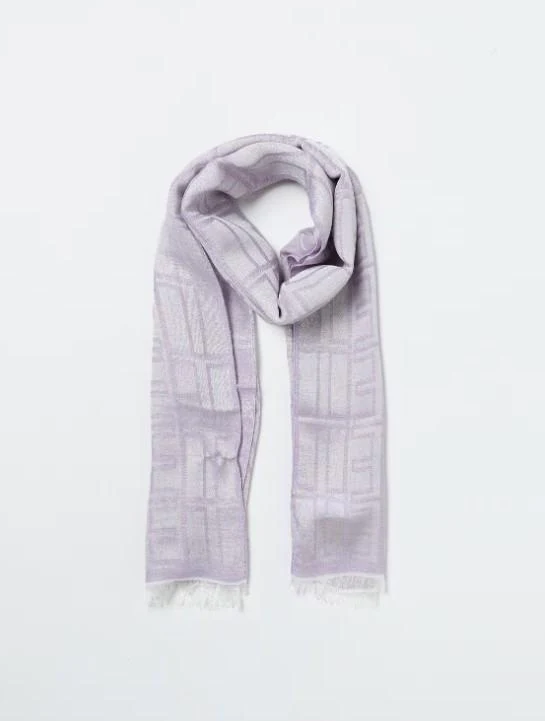 Foulard di viscosa e seta, con stampa effetto pizzo e logo in contrasto