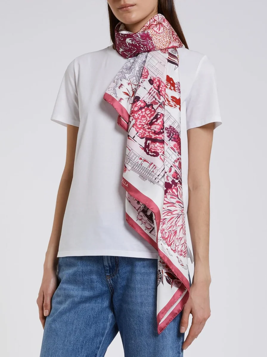 Foulard in pura seta, stampa con fantasia mirage, colore fucsia