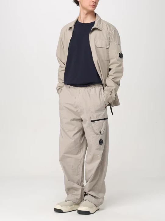Overshirt full zip CP Company, modello realizzato in gabardina di cotone, colletto classico, chiusura full zip, tasca sul petto con patta e bottoni, taschino con lente, regular fit, colore beige