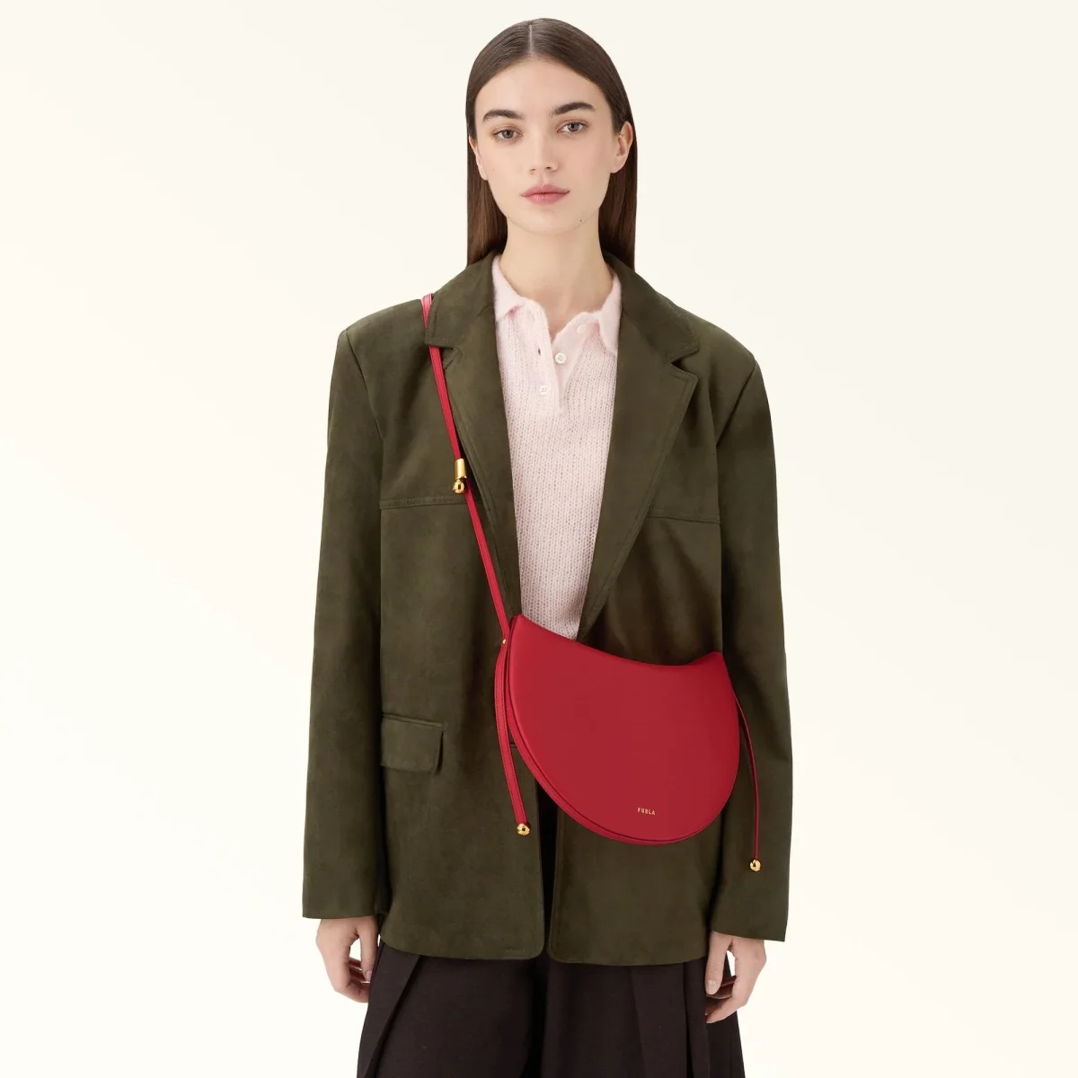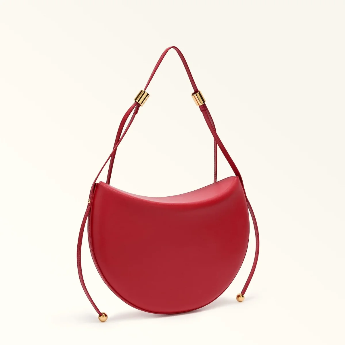 Borsa in pelle di vitello Sidney Furla Moonstone, tracolla fissa e regolabile, tasca interna a parete, chiusura con bottone a calamita, colore rosso