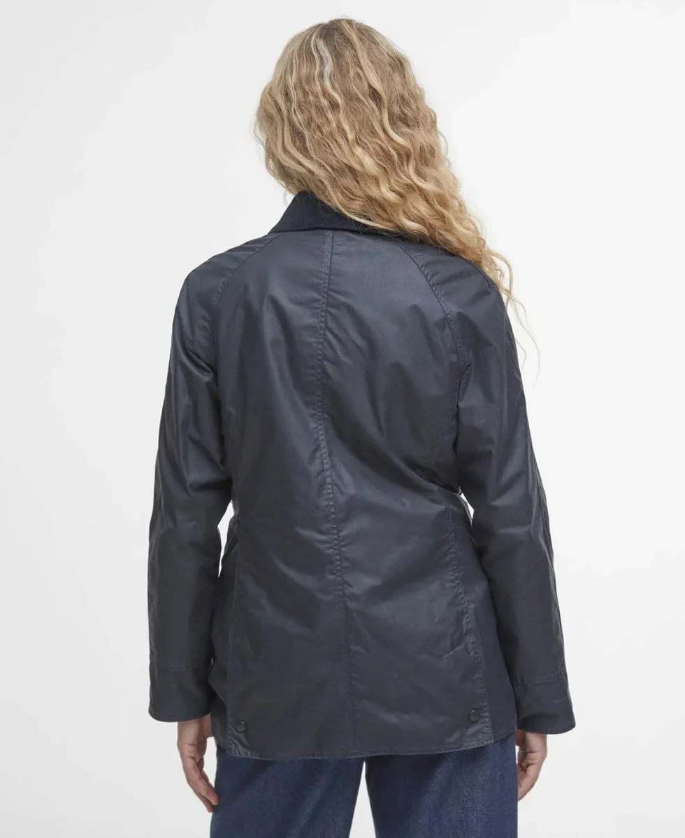 Giacca cerata leggera Beadnell, realizzata in cotone cerato. Colletto a coste sottili, tasche scaldamani e tasche con chiusura a bottone sul davanti, colore blu navy, vestibilità regular