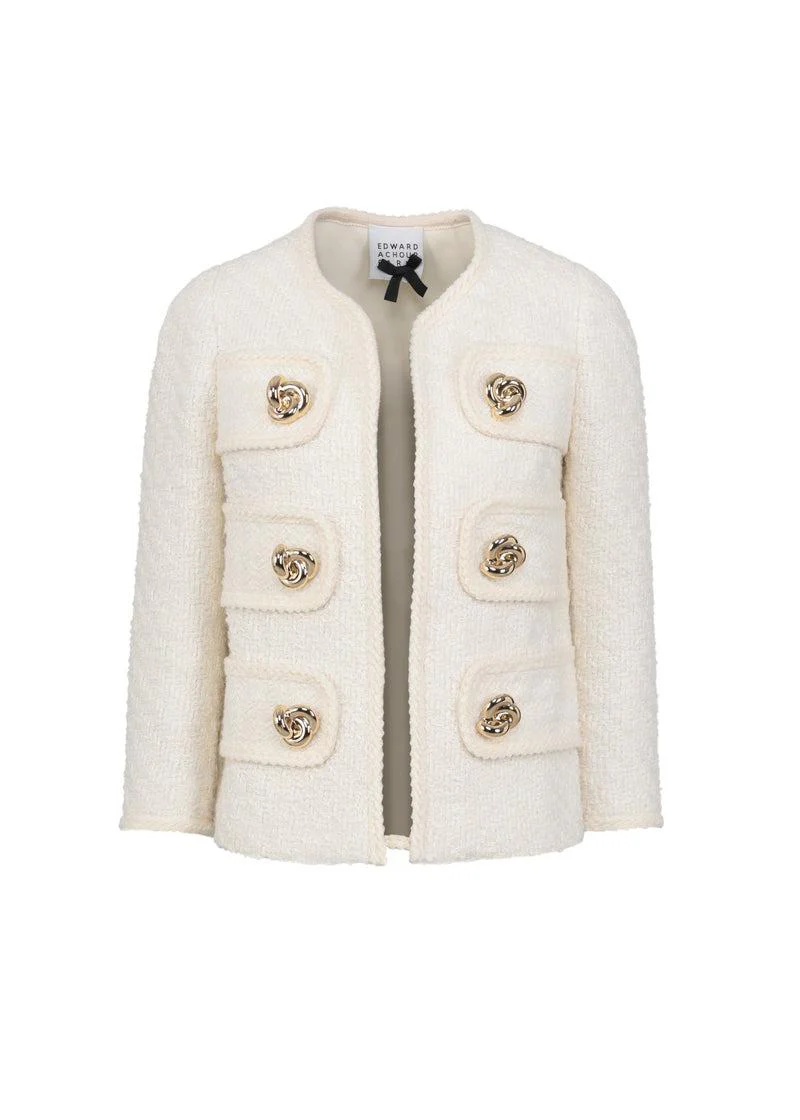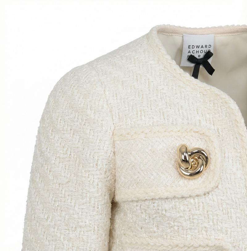 Giacca corta Edward Achour, modello con bottoni gioiello, dettagli a quadri e vestibilità strutturata, colore bianco