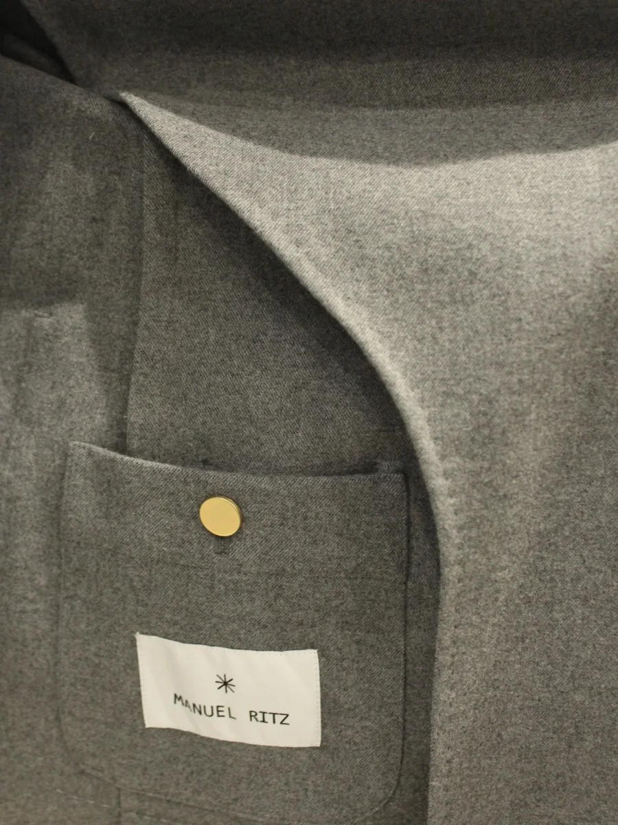 Giacca doppiopetto Manuel Ritz, modello con collo rever a lancia, maniche lunghe, chiusura con bottoni, tasche a toppa, colore grigio