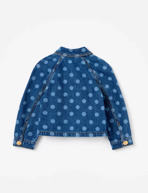Giacca in denim dal tessuto elastico, chiusura bottoni sul davanti, dettagli sulle maniche e bottoni in dettaglio a forma di conchiglia, colore blu