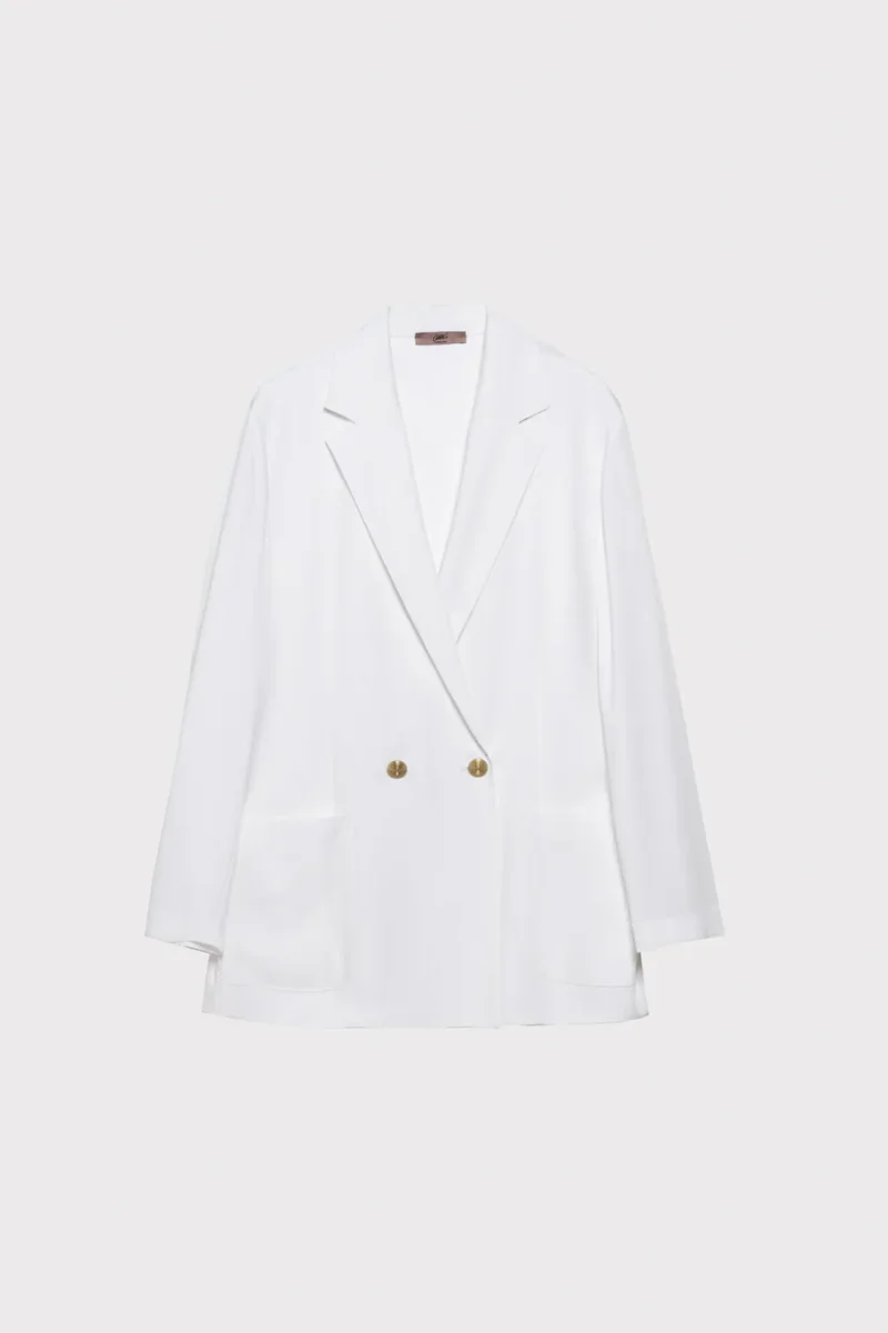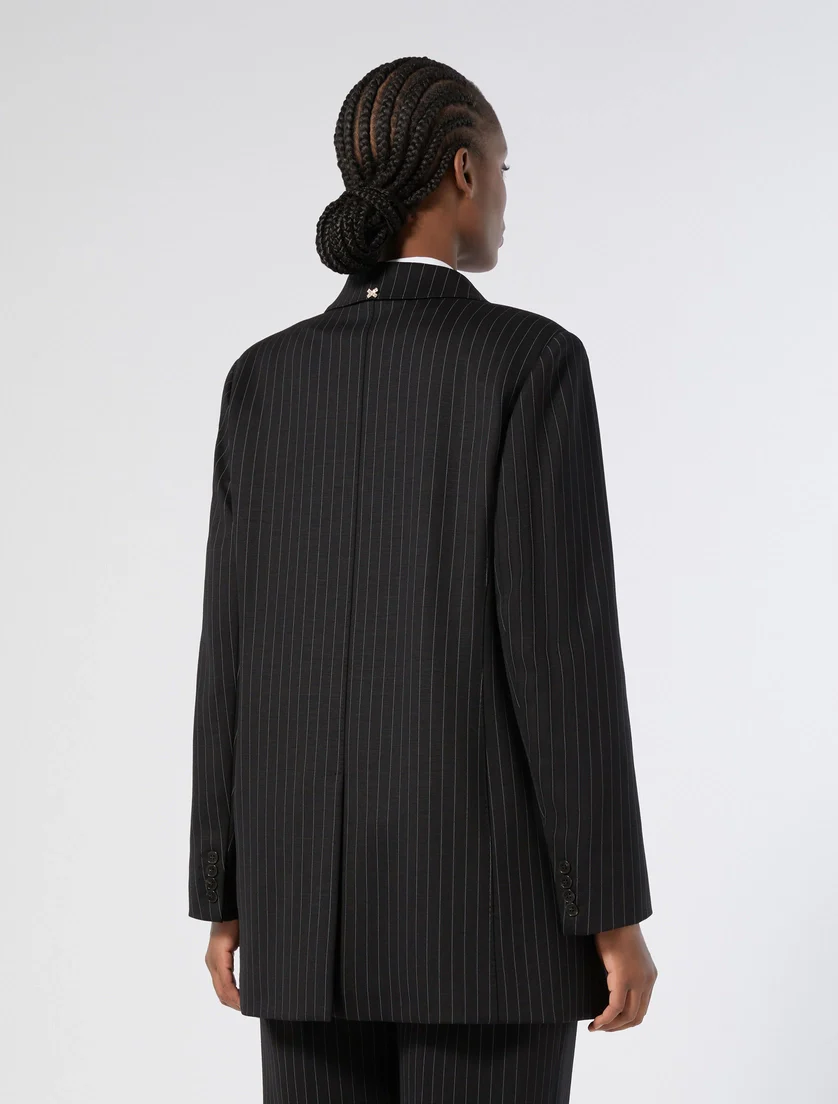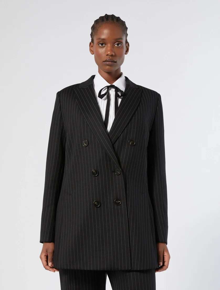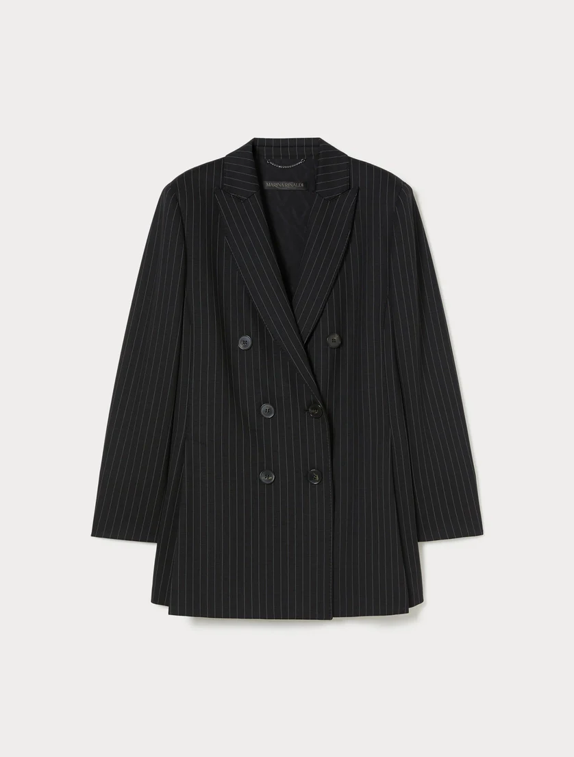 Giacca in jersey Marina Rinaldi, modello in jersey jacquard di misto lana bistretch, collo con revers a lancia, chiusura doppiopetto con bottoni, maniche con spacco al fondo e bottoni, colore nero
