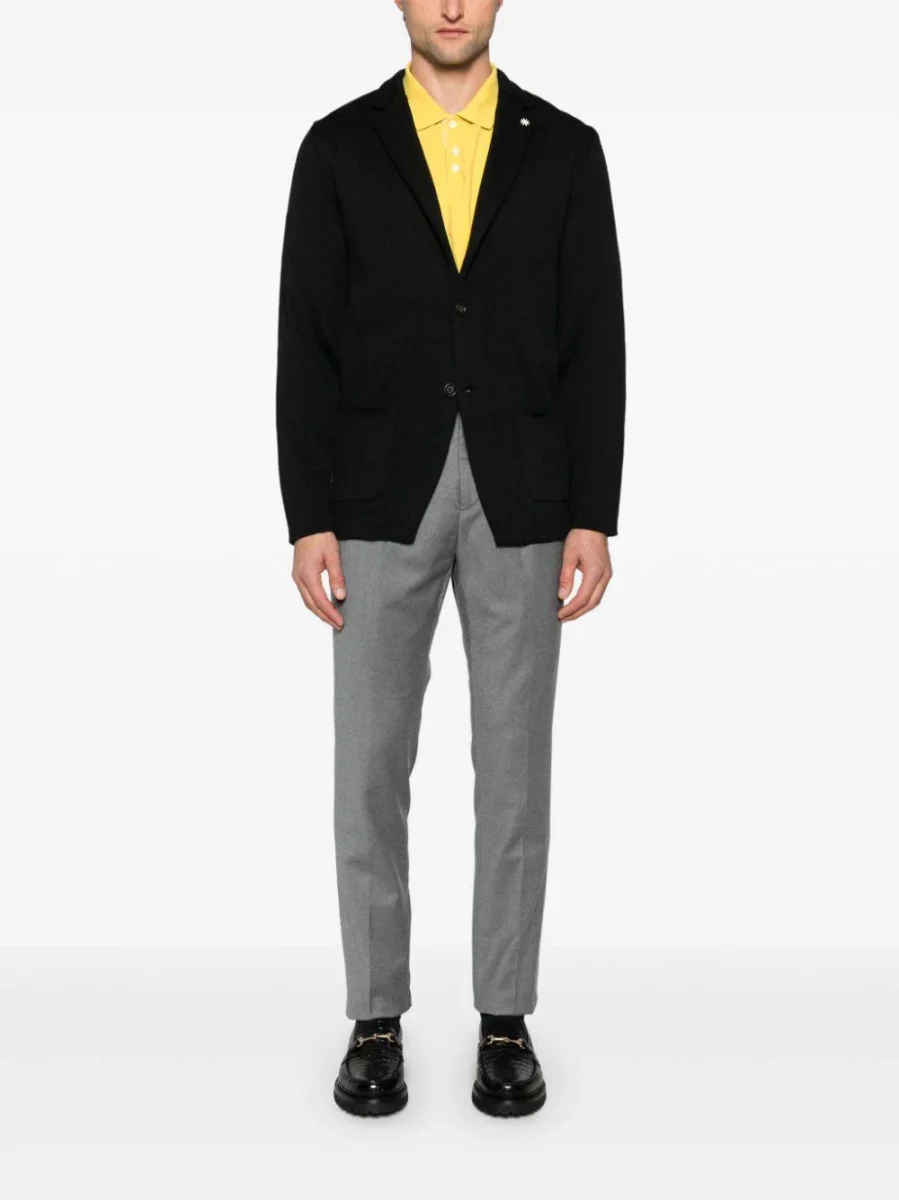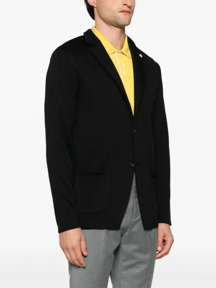 Giacca in maglia rasata Manuel Ritz uomo, chiusura a due bottoni e due tasche a toppa frontali, colore nero