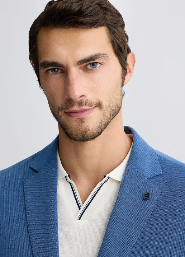 Giacca in tessuto mèlange Liu Jo, modello con rever classico, tasche applicate, chiusura monopetto e spilla removibile, colore azzurro