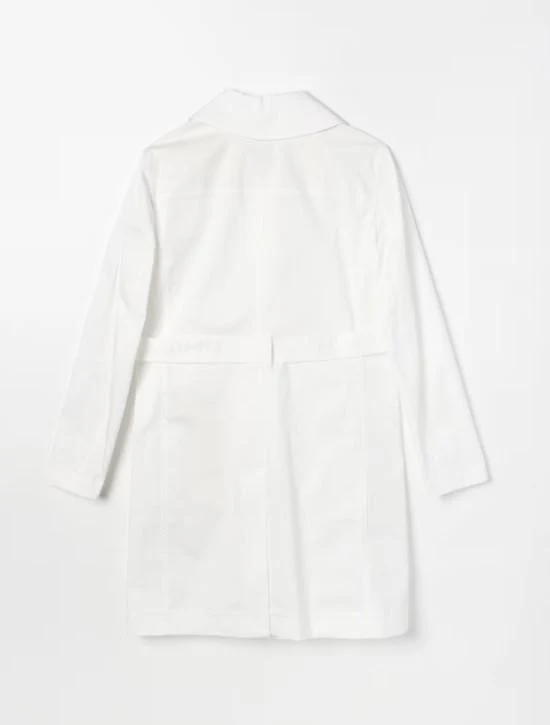Giacca lunga Fay bambina, modello con chiusura gancetto in contrasto oro, vestibilità lunga, cintura in vita in tono. Colore bianco