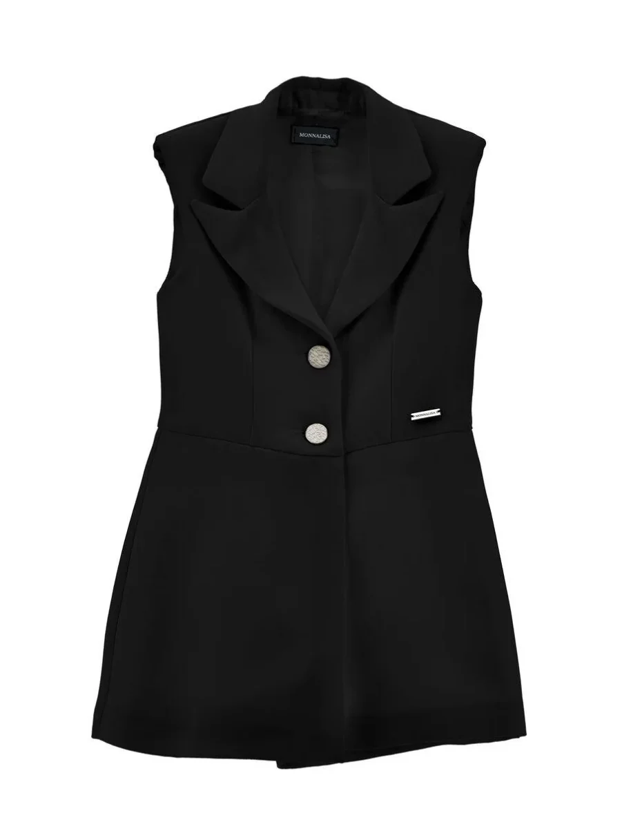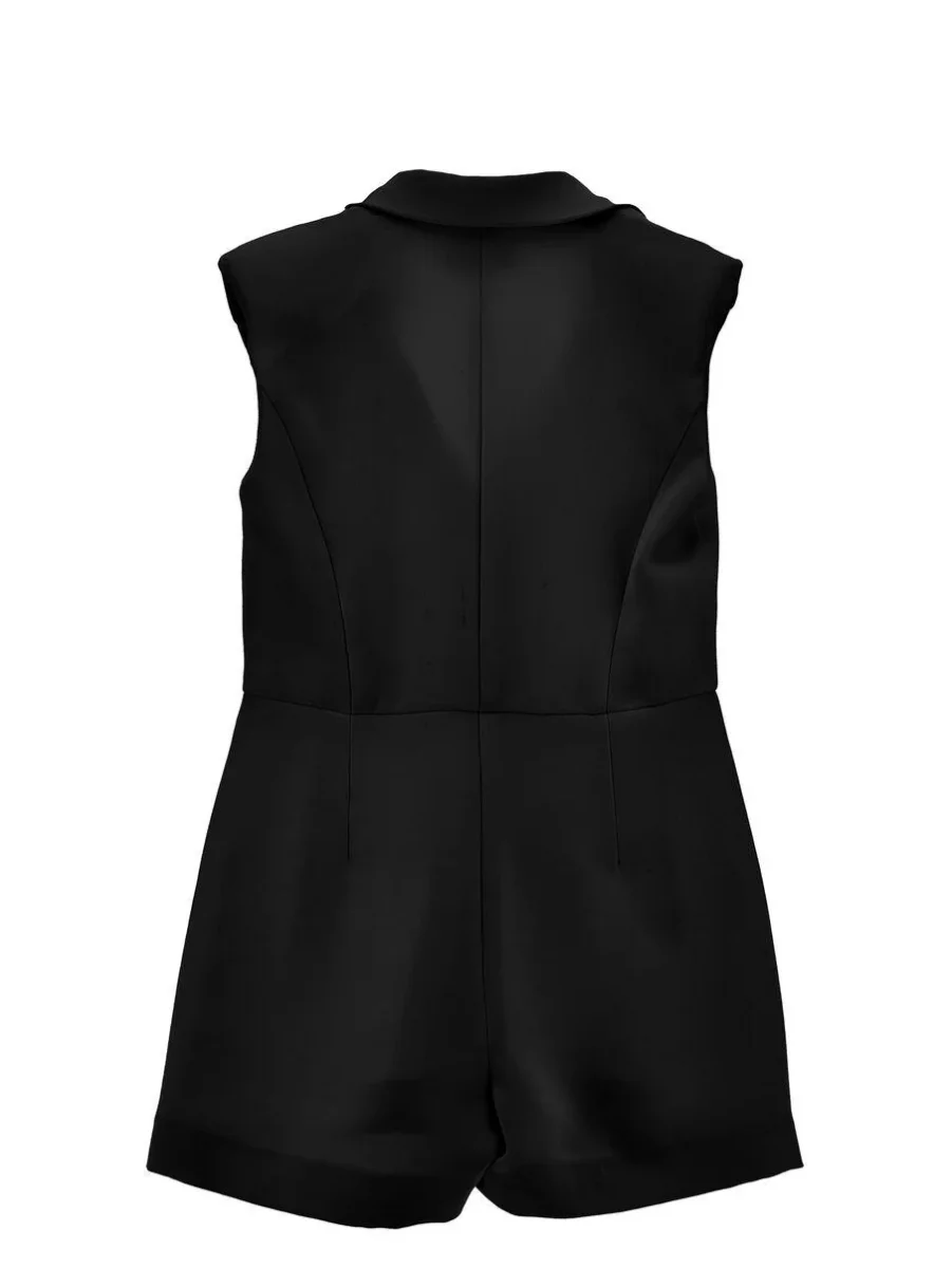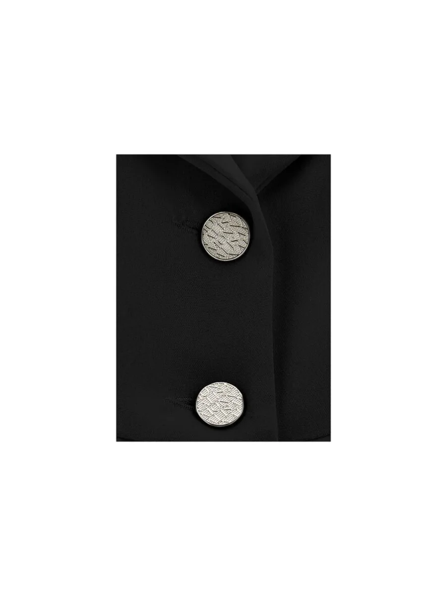 Giacca design a tuta con colletto a revers, allacciatura con bottoni metallici logati, shorts con zip, colore nero