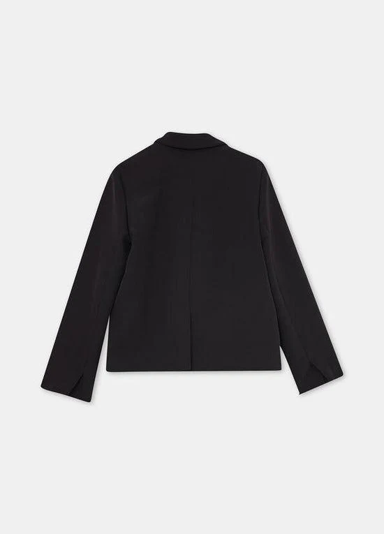 Giacca Liu Jo in tessuto stretch, revers classico e chiusura doppiopetto, tasche con patta e spacchetti, spacco sul retro, logo in contrasto, colore nero