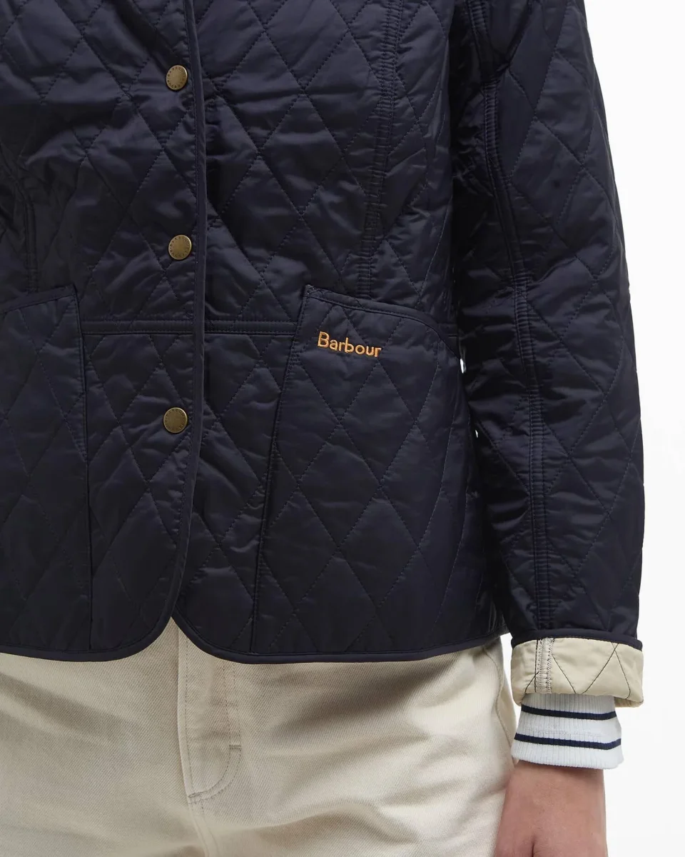 Giacca trapuntata Summer Liddesdale, modello realizzato con esterno trapuntato a quadri, chiusura con bottoni a pressione centrali, colletto a coste sottili, tipiche tasche Liddesdale con fodera a contrasto, colore blu navy