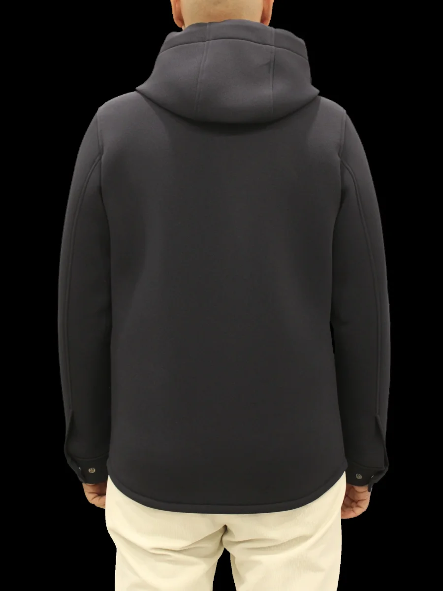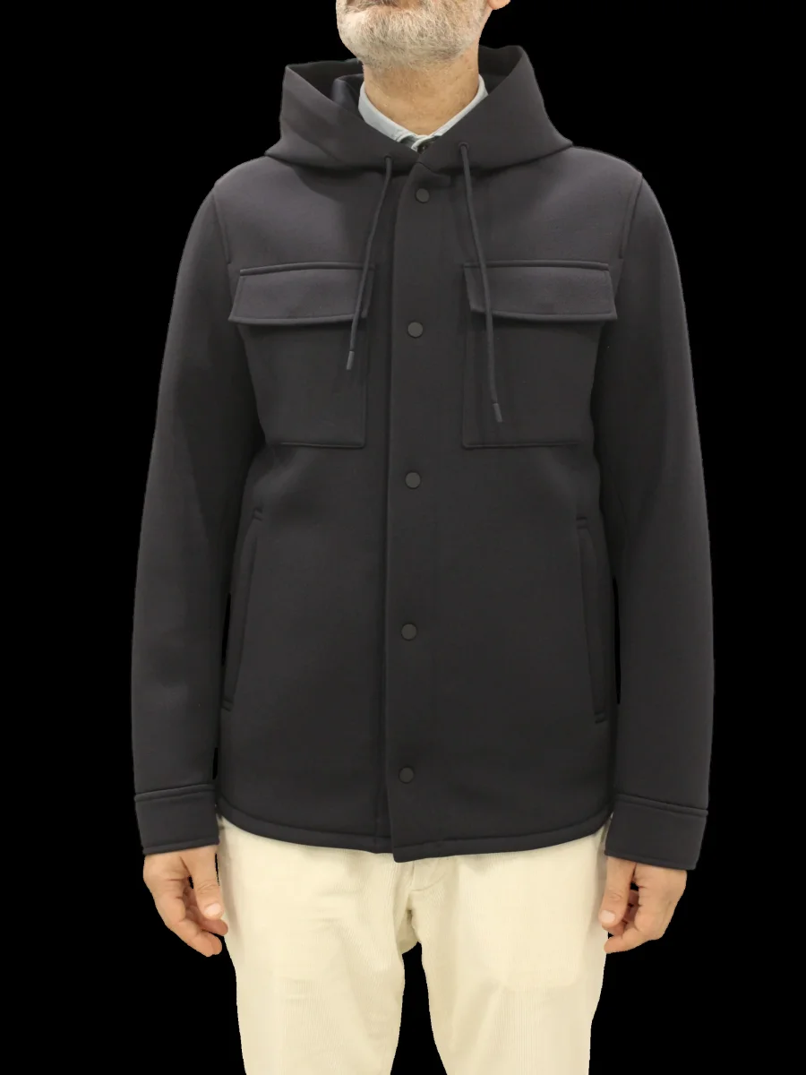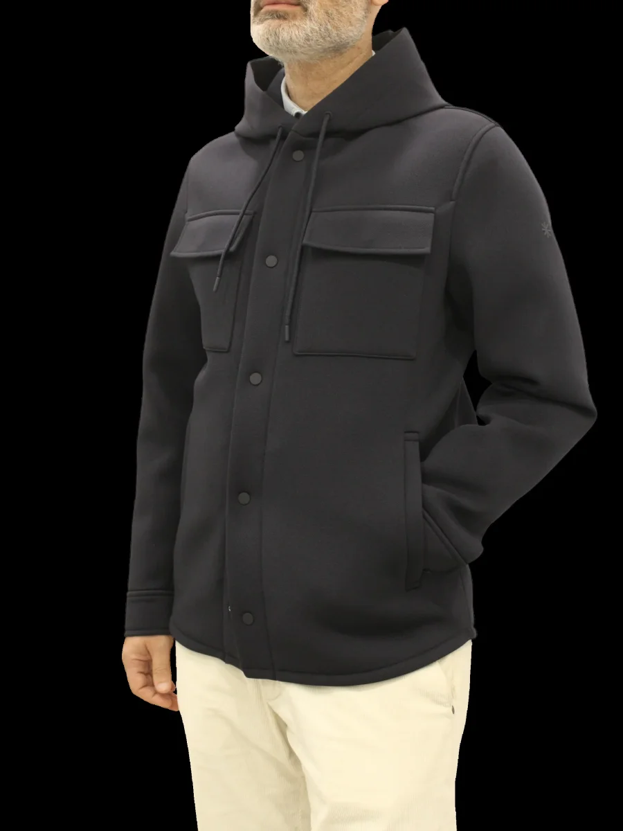 Giaccone Manuel Ritz modello con cappuccio e coulisse regolabile, tasche applicate, chiusura con bottoncini, colore blu