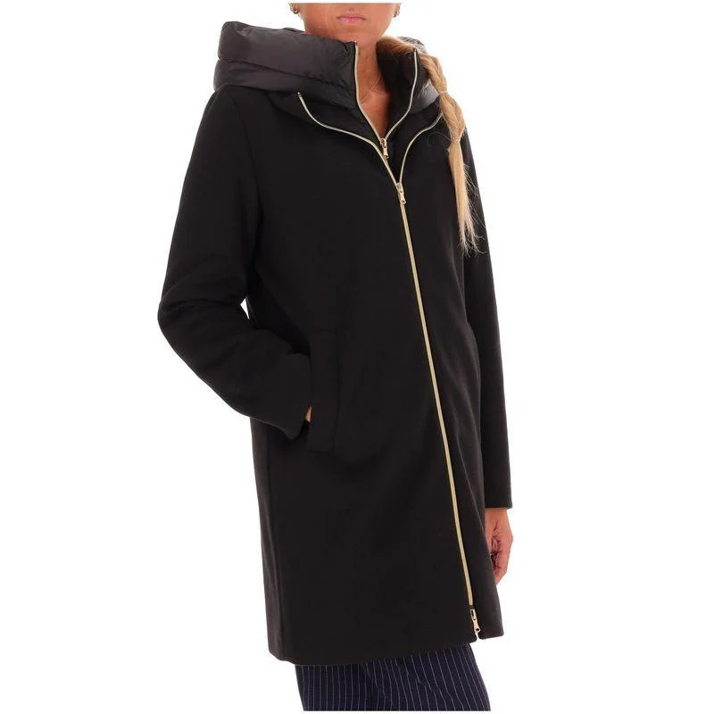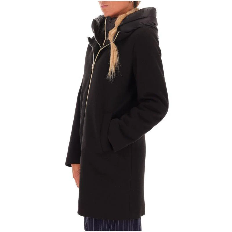 Giaccone in panno soft imbotitto Emme Marella, fit dirtto, collo con cappuccio e pettorina rimovibili, chiusura con zip interna nascosta ed esterna a vista, tasche a filetto, colore nero
