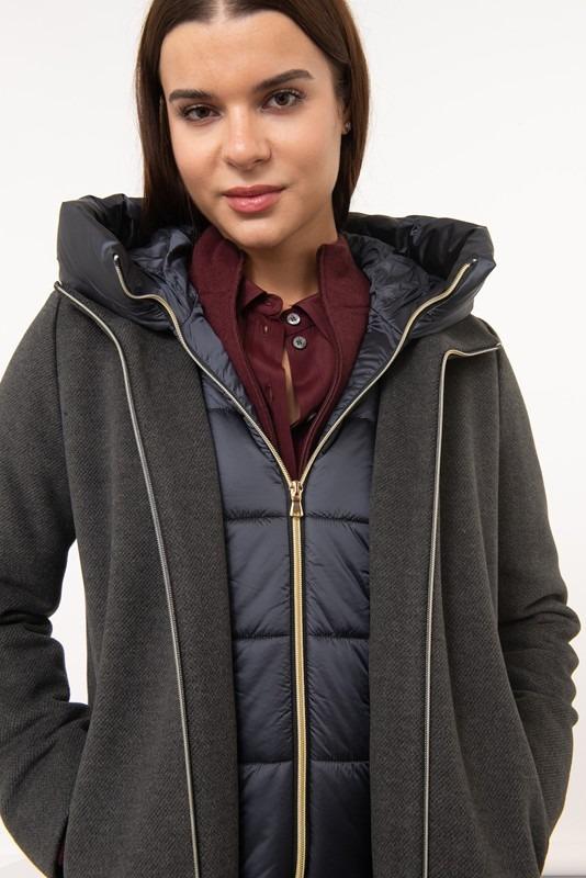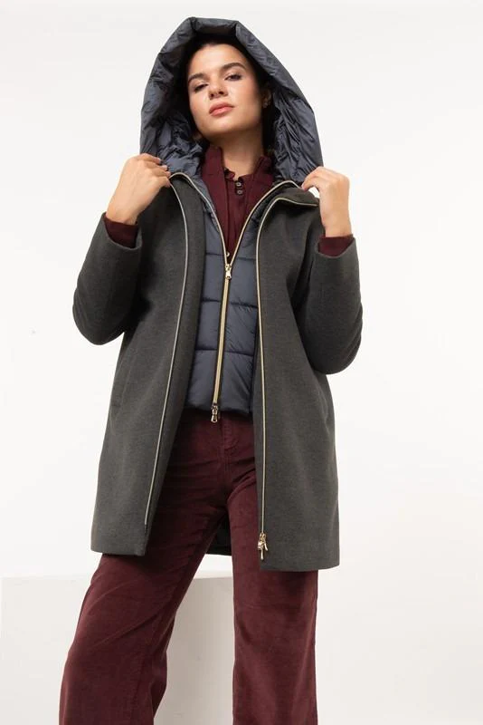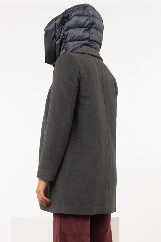 Giaccone in panno soft imbotitto Emme Marella, fit dirtto, collo con cappuccio e pettorina rimovibili, chiusura con zip interna nascosta ed esterna a vista, tasche a filetto, colore grigio