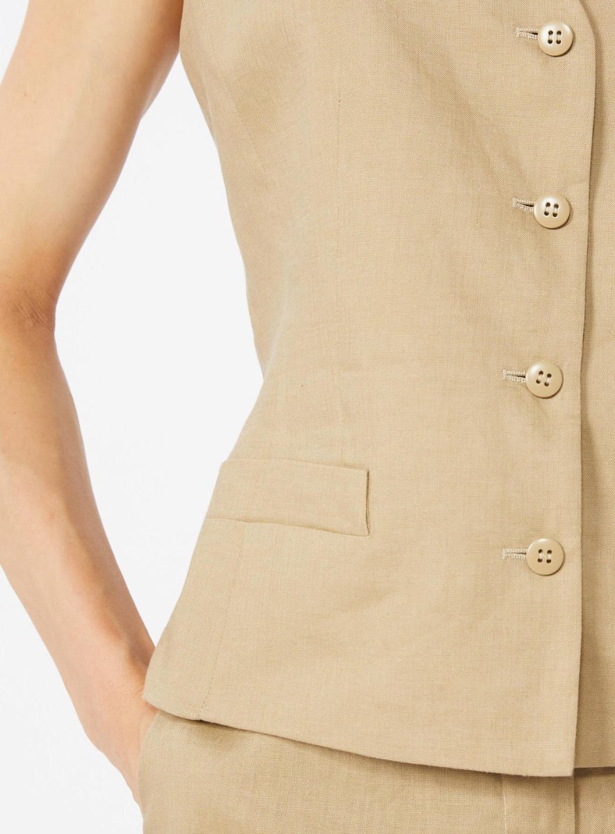 Gilet Max Mara Studio, modello in tela leggera di lino, regular fit, scollo a V, chiusura monopetto con bottoni a vista, tasche a filetto sui fianchi, colore beige
