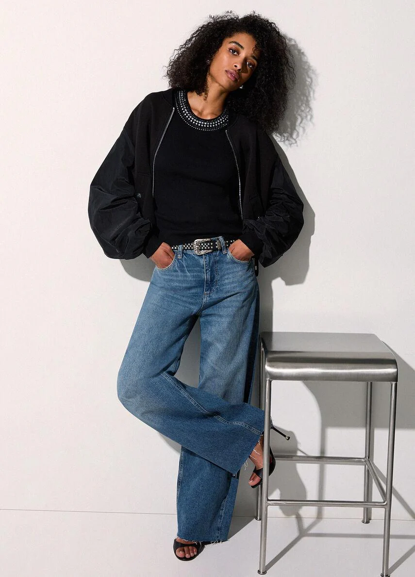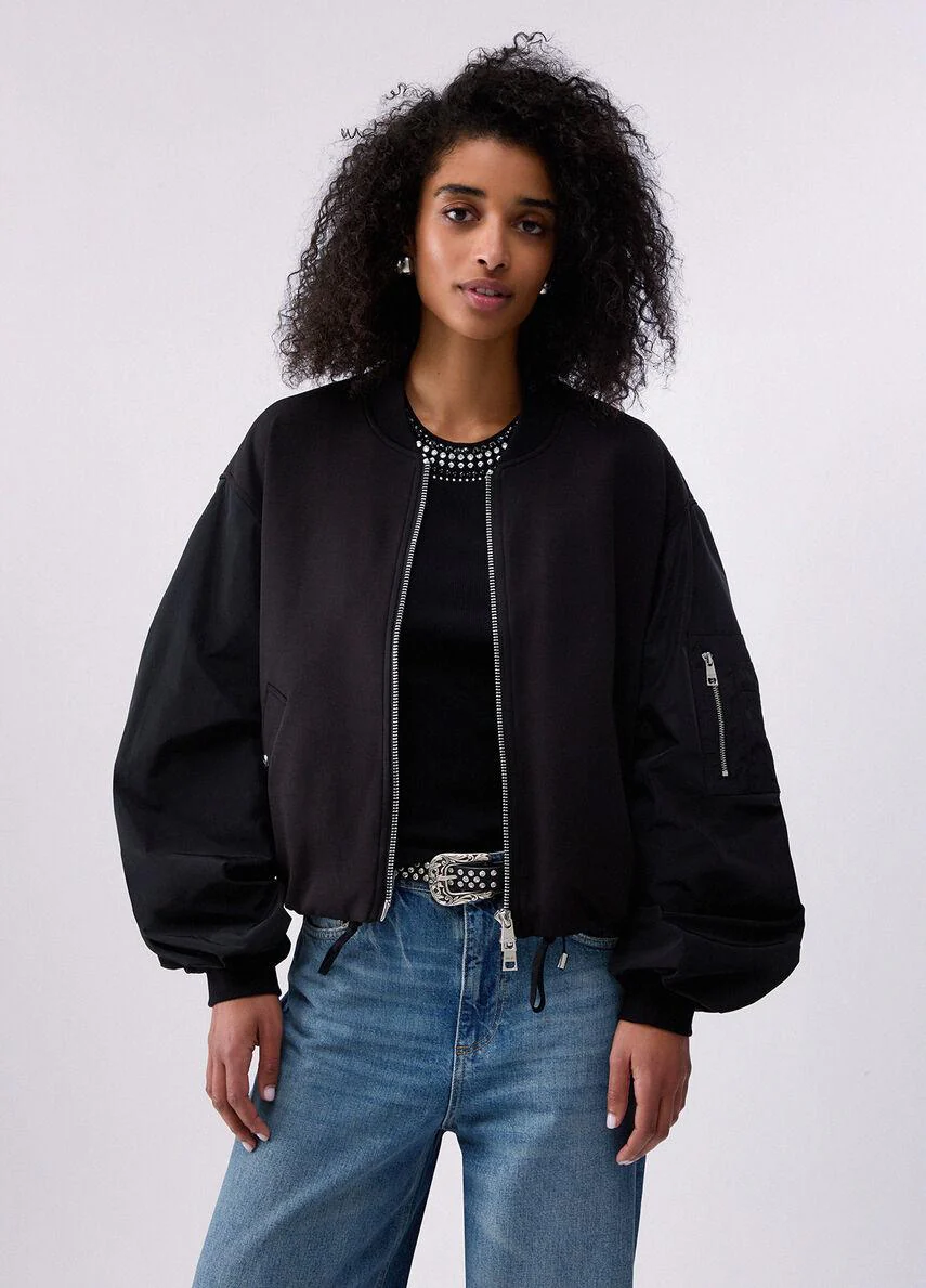 Giubbino Liu Jo donna, modello bomber, chiusura full zip centrale, coulisse al fondo, colore nero