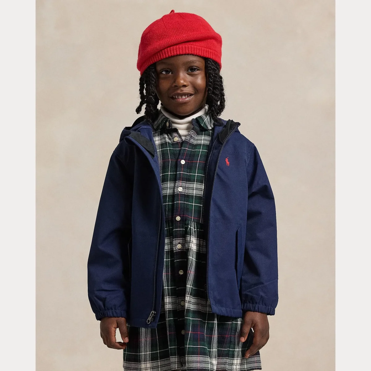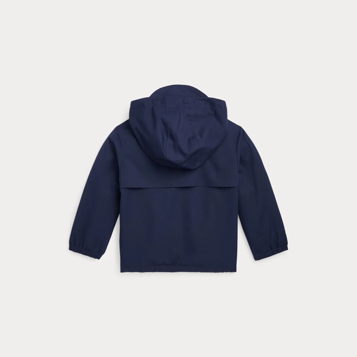 Giubbino in tessuto idrorepellente, chiusura centrale con zip, logo iconico, cavallino in contrasto all over sul petto, colore blu