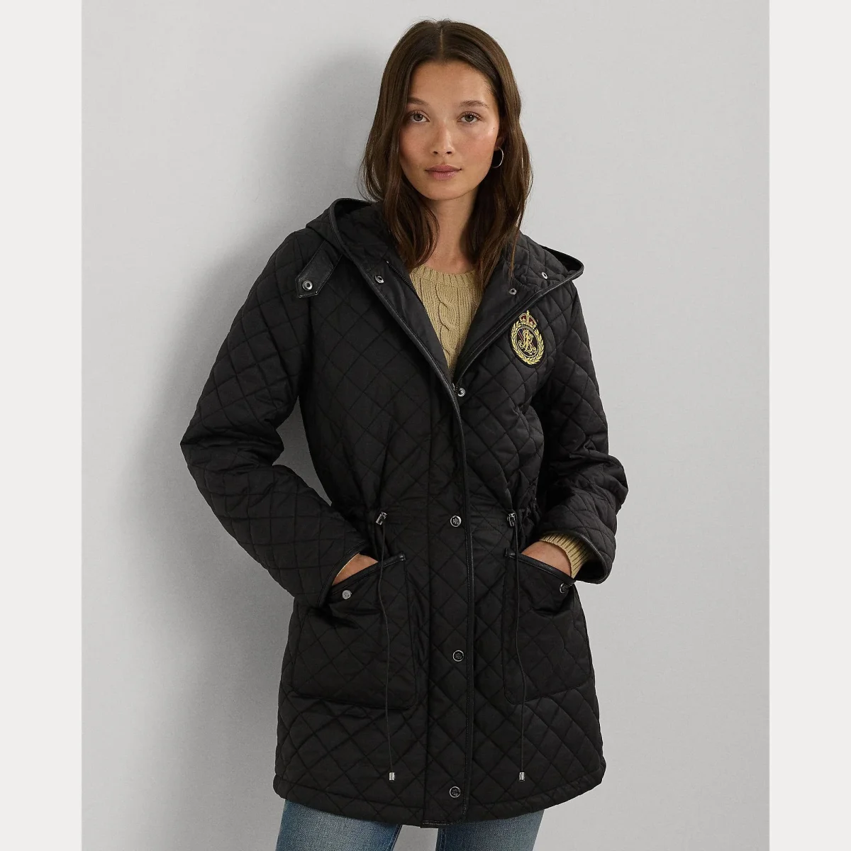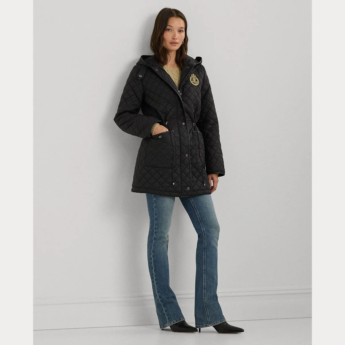 cappotto trapuntato Ralph Lauren, modello con cappuccio leggermente imbottito e guscio resistente all’acqua, toppa con stemma Ralph Lauren, finiture in finta pelle e bottoni incisi