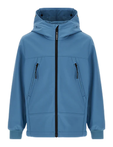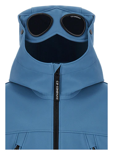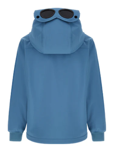 Giubbino CP Company Kids, modello con cappuccio e Googgle iconico, chiusura sul davanti, colore azzurro