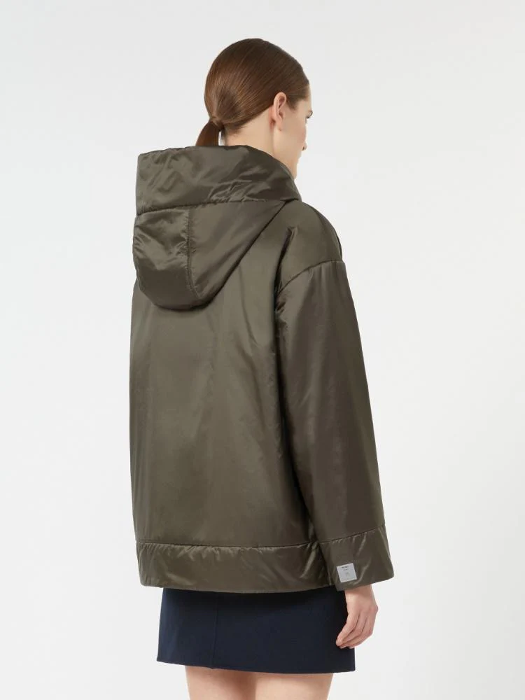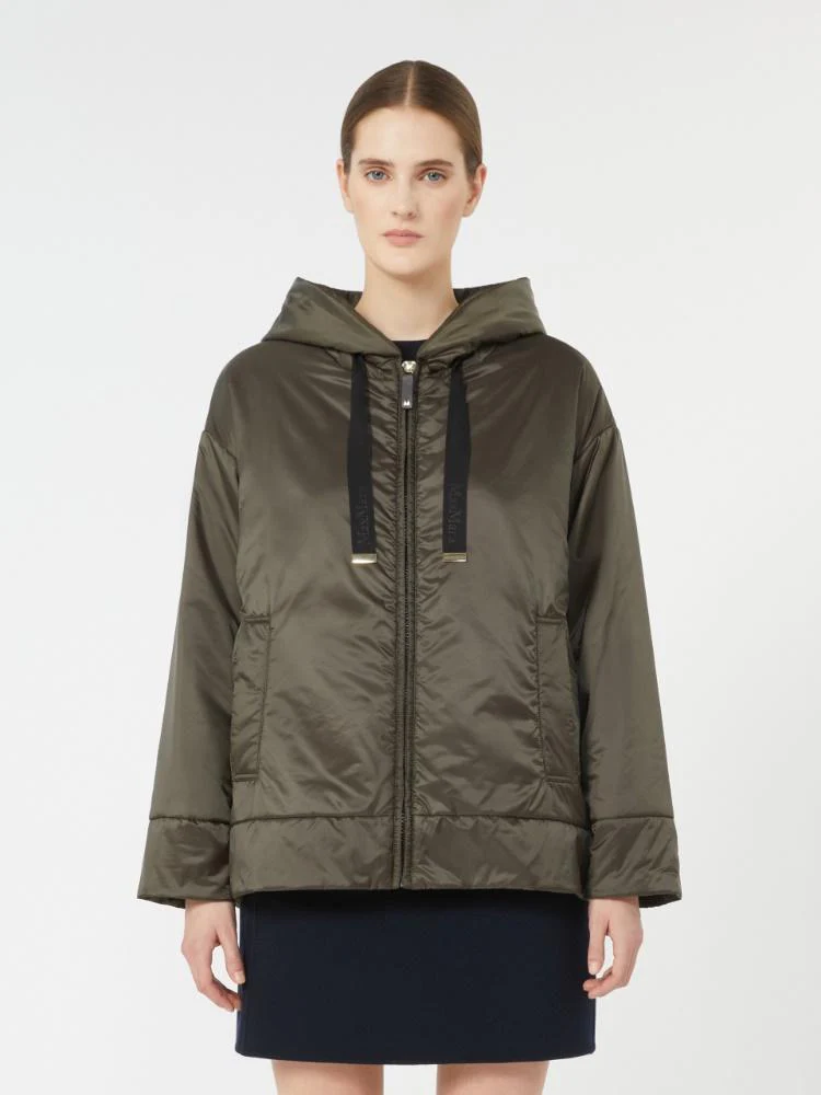 Giacca imbottita, modello realizzato in tela antigoccia, chiusura con zip e cursore in pelle monogram in metallo, tasche a filetto sui fianchi, spacchi laterali con bottoni a pressione, colore verde