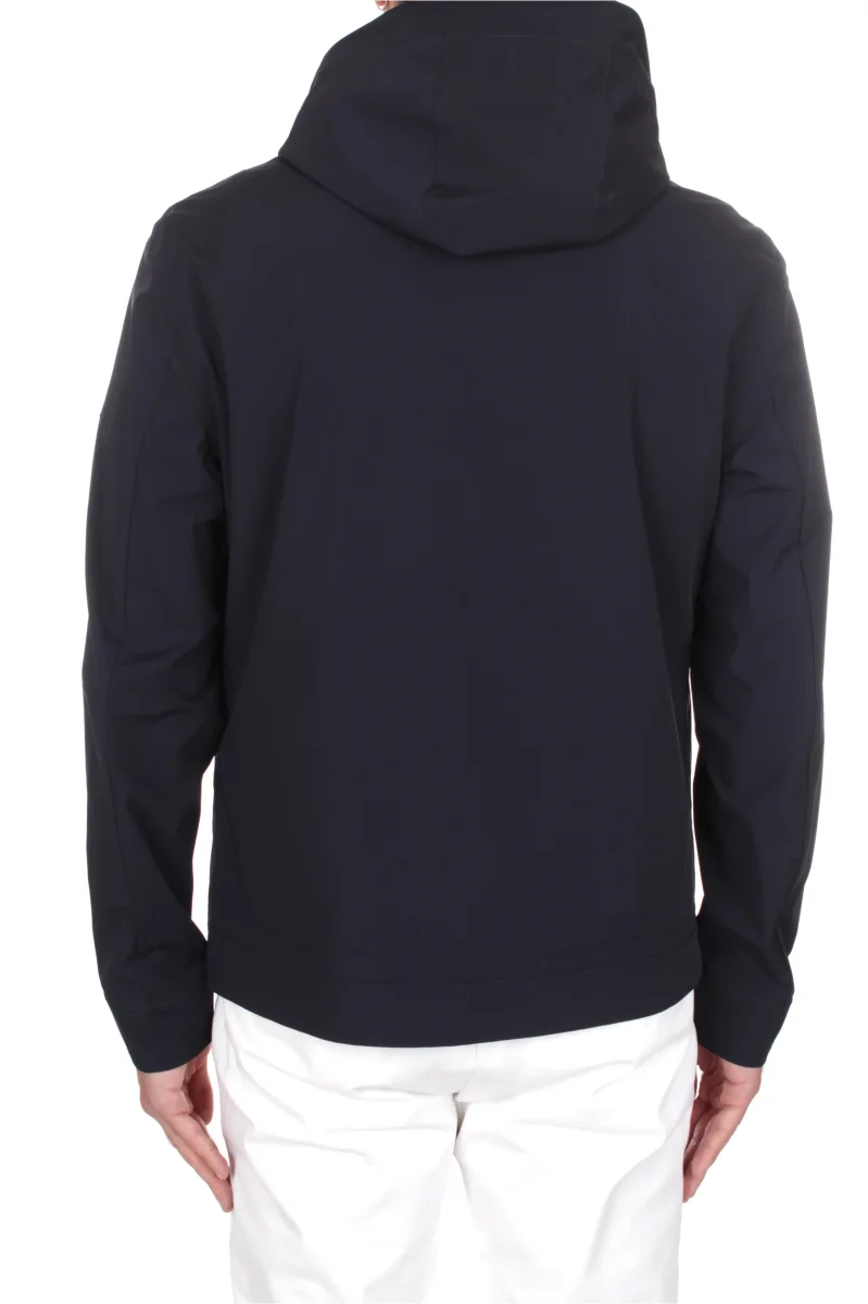Giubbino con cappuccio Hèskimo, realizzato in nylon leggero, chiusura con zip, due tasche laterali chiusura con zip, doppio cursore e patch logo, vestibilità slim, colore blu