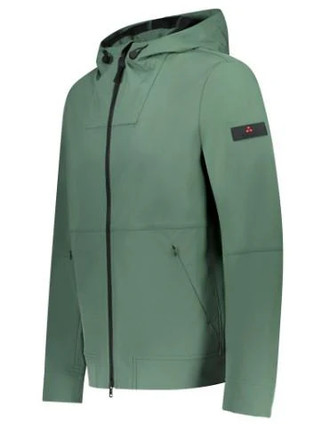 Bomber liscio Peuterey uomo, modello Lembata, realizzato in tela di nylon elasticizzata. Altamente traspirante e leggero. Full zip centrale con doppio cursore e tasche laterali. Ampio collo a cratere con cappuccio e coulisse, colore verde. Vestibilità regolare