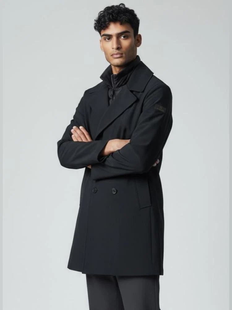 Giubbino Stellan Hetrego, modello doppiopetto con pettorina interna, patch su una manica, colore blu navy