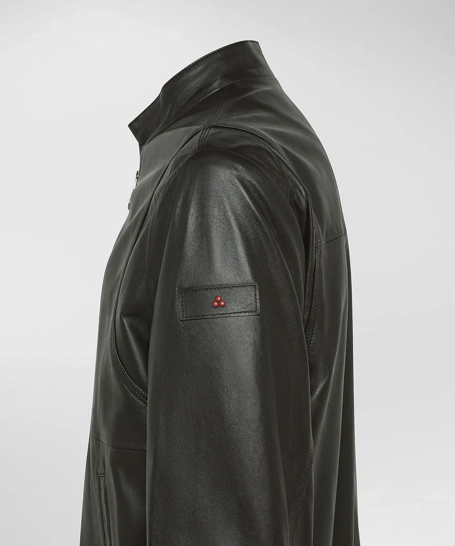 Bomber Tureia Peuterey, modello in morbida pelle tinta, collo, fondo e polsini in maglia, full zip metallica a doppio cursore, colore nero, vestibilità regular