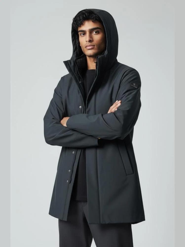 Giubbino Hetrego uomo, modello realizzato in wendel softshell, chiusura con zip, patch sul braccio, cappuccio fisso, colore navy