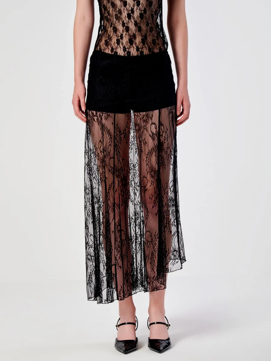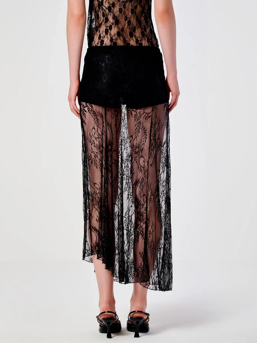 Gonna lunga in pizzo trasparente Vicolo, fondo asimmetrico, elastico in vita, colore nero