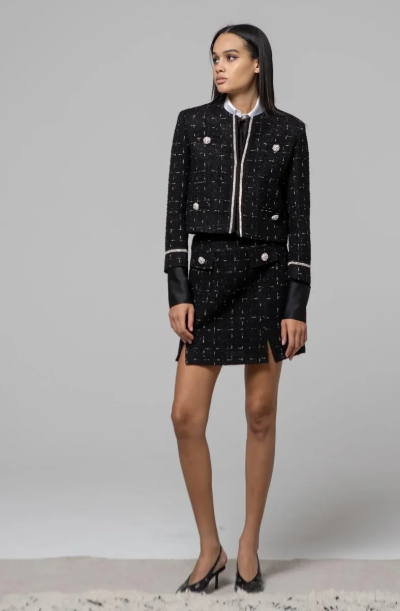 Gonna Hanita modello in chanel con bottoni gioiello, colore nero